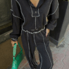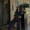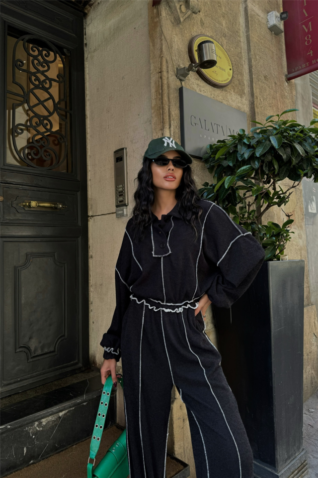 BİYELİ BLUZ PANTOLON TAKIM ŞÖNİL KUMAŞ – Siyah