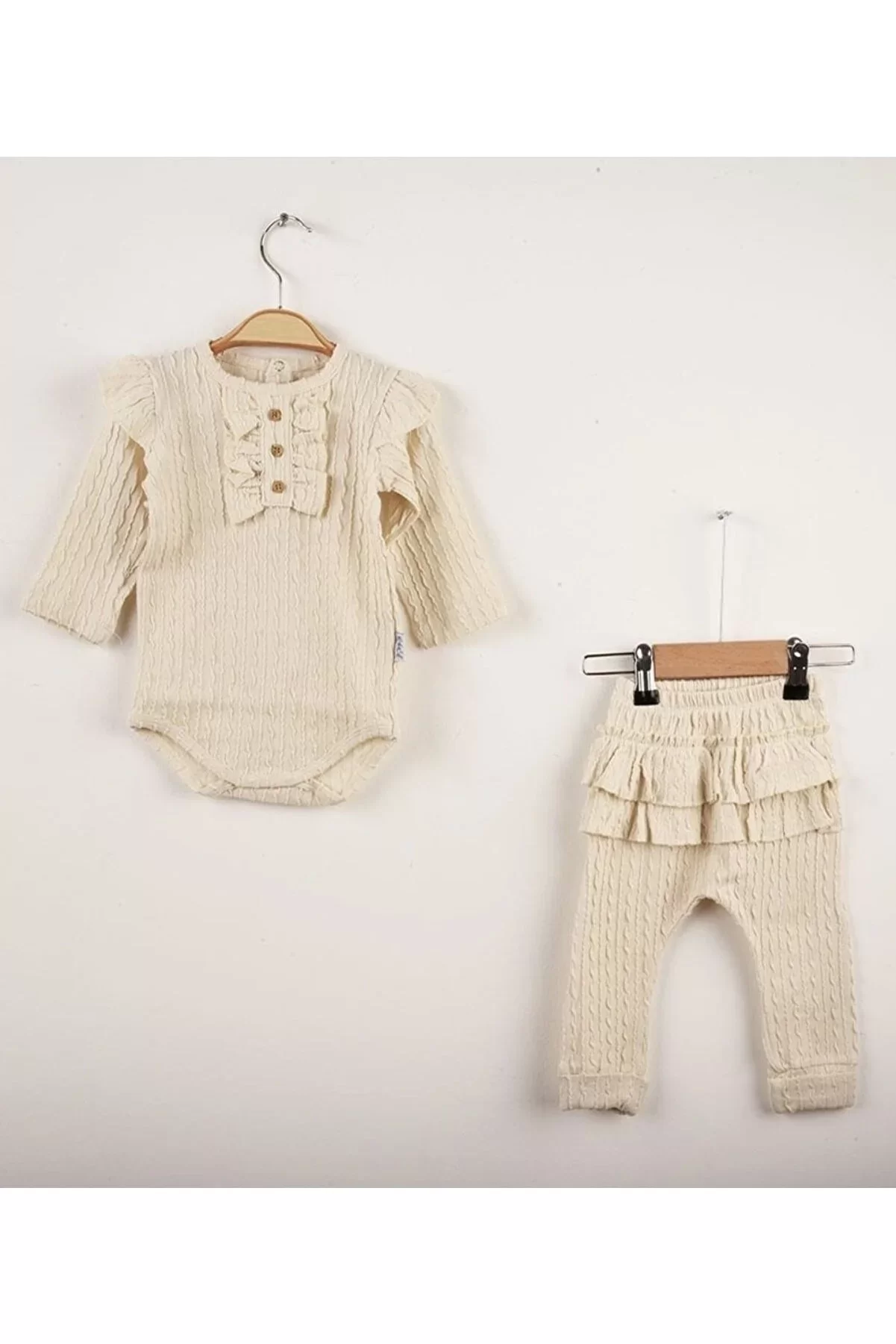 Büzgü Detaylı Fırfırlı % 100 Pamuk 2’li Kız Bebek Takımı