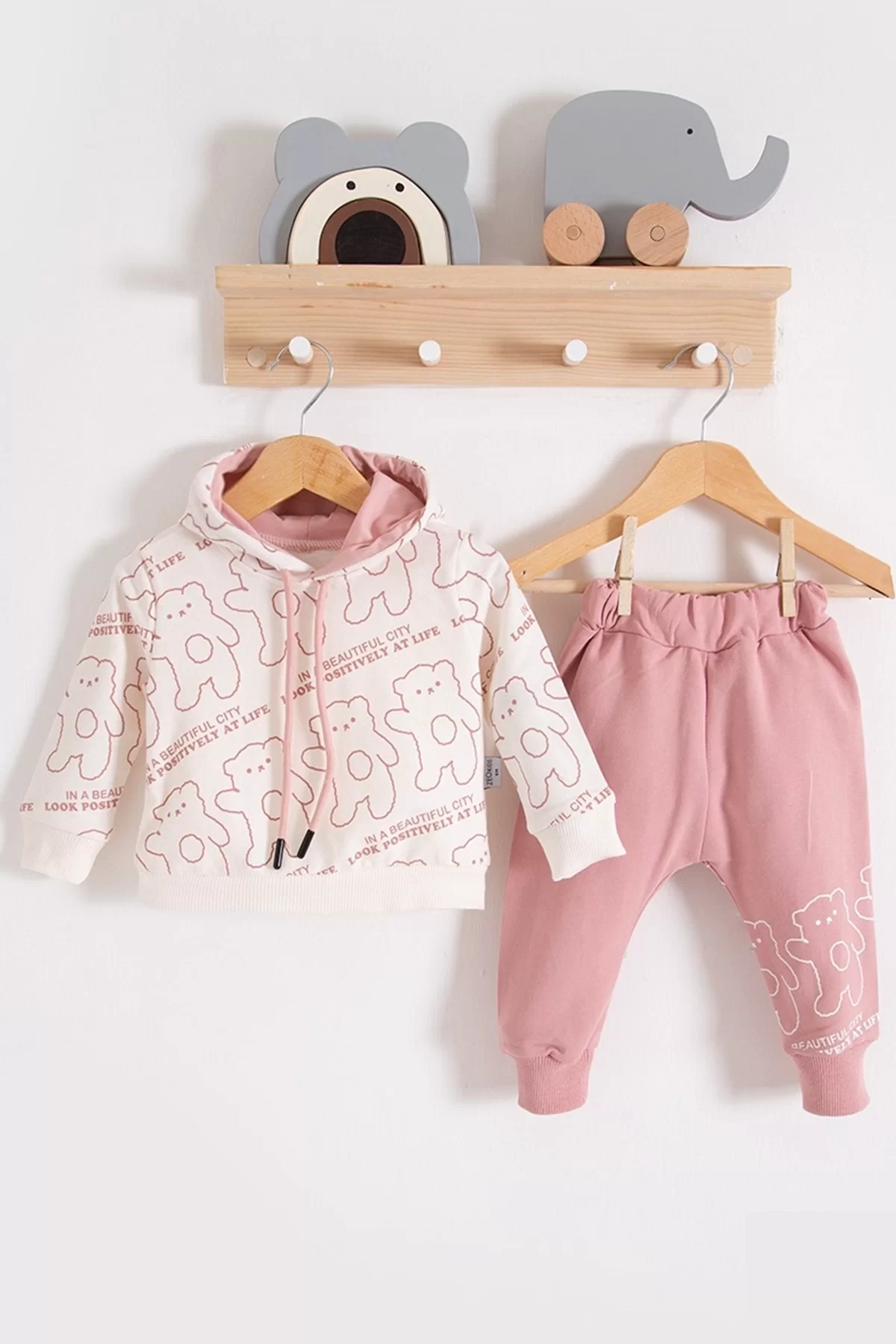 Çapraz Bears Kapüşonlu % 100 Pamuk Erkek Bebek Takımı