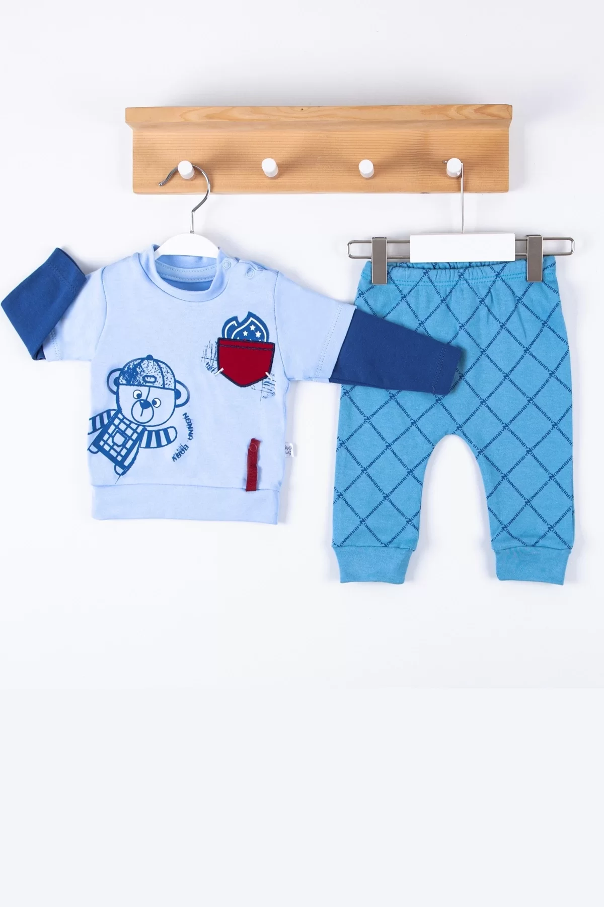Cep Bear Nakışlı % 100 Pamuk Hırkalı 2’li Erkek Takım.
