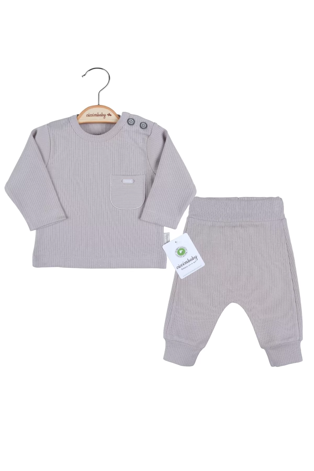 Cep Nakışlı Omuzdan Düğmeli % 100 Pamuk Erkek Bebek Takım.