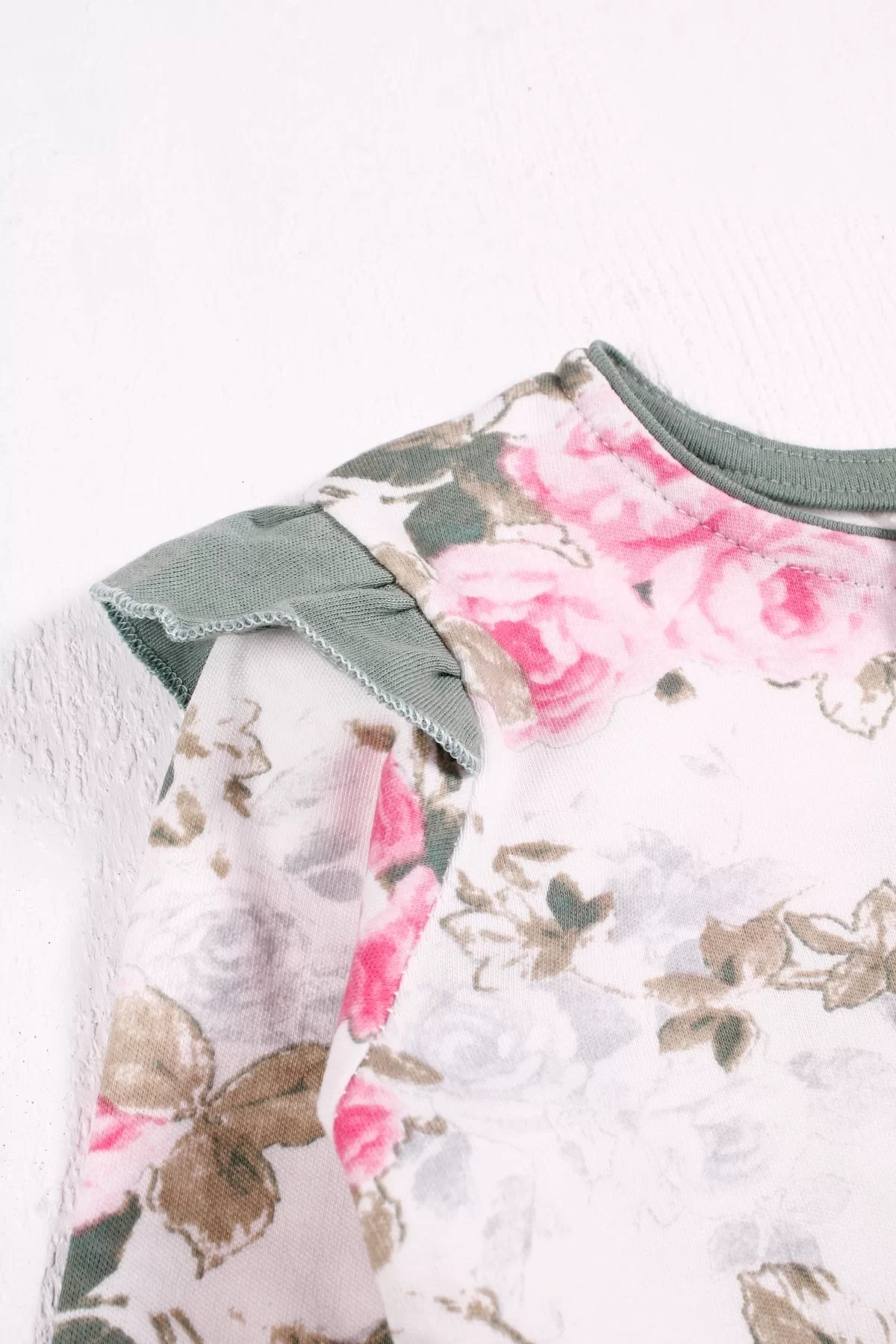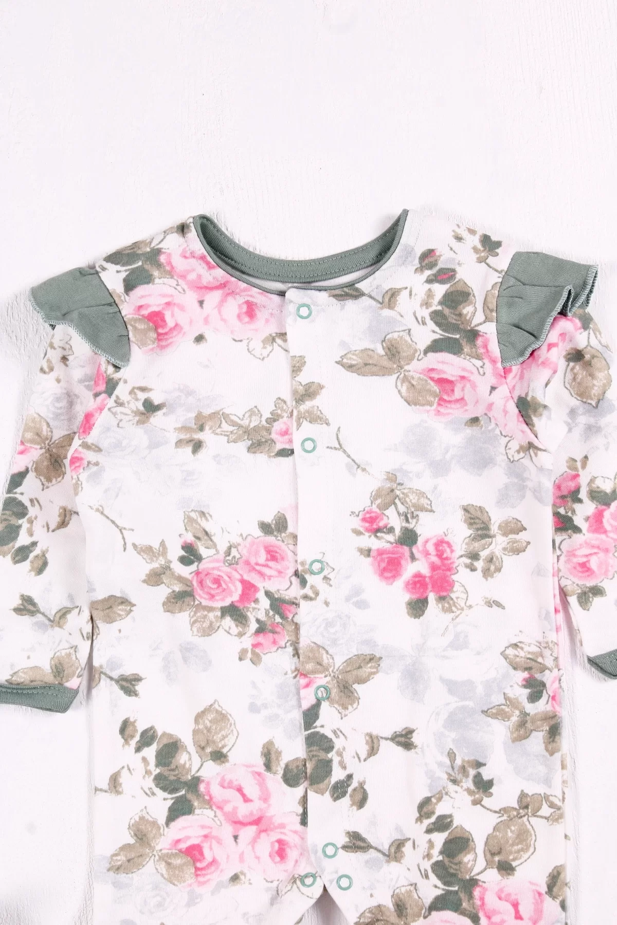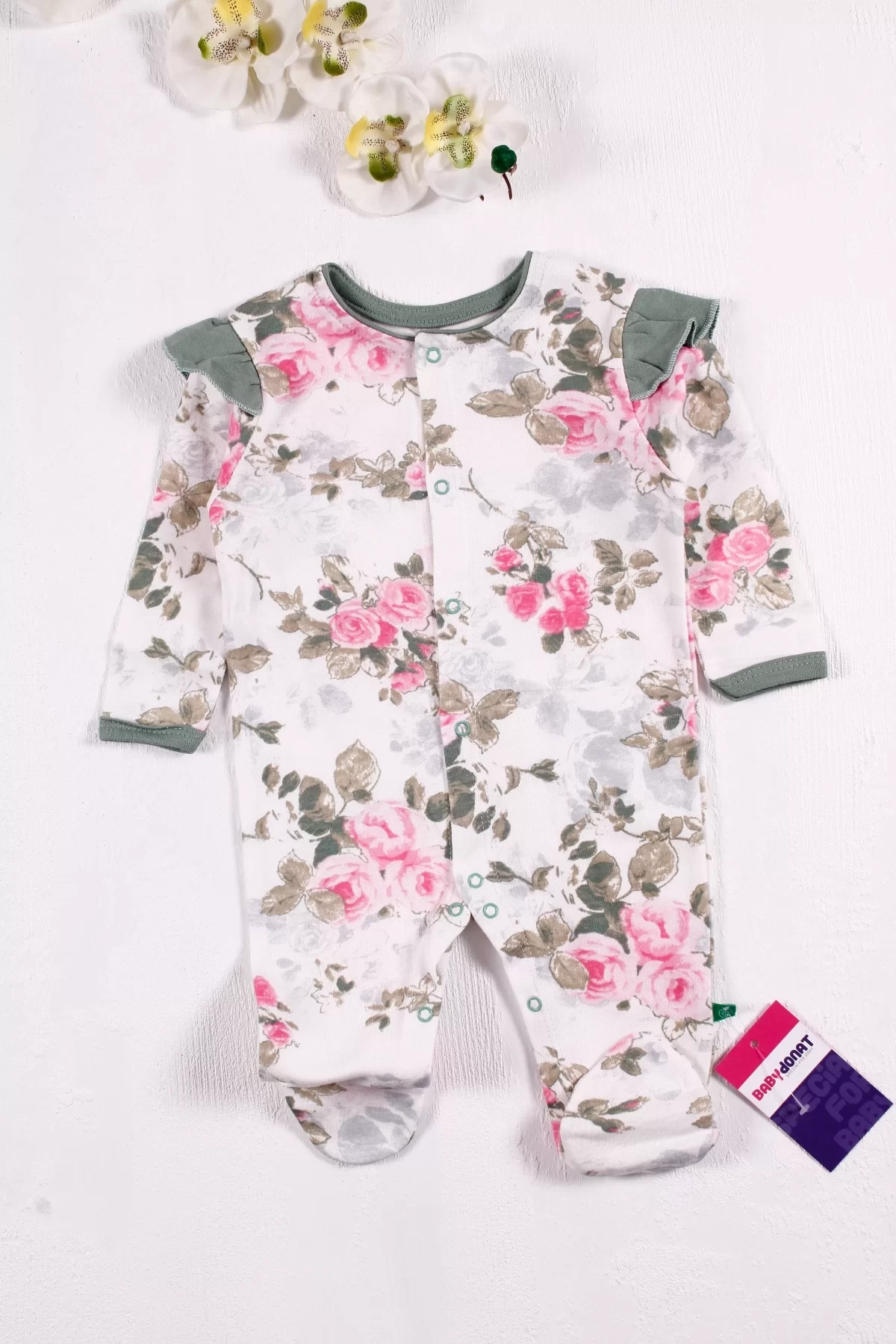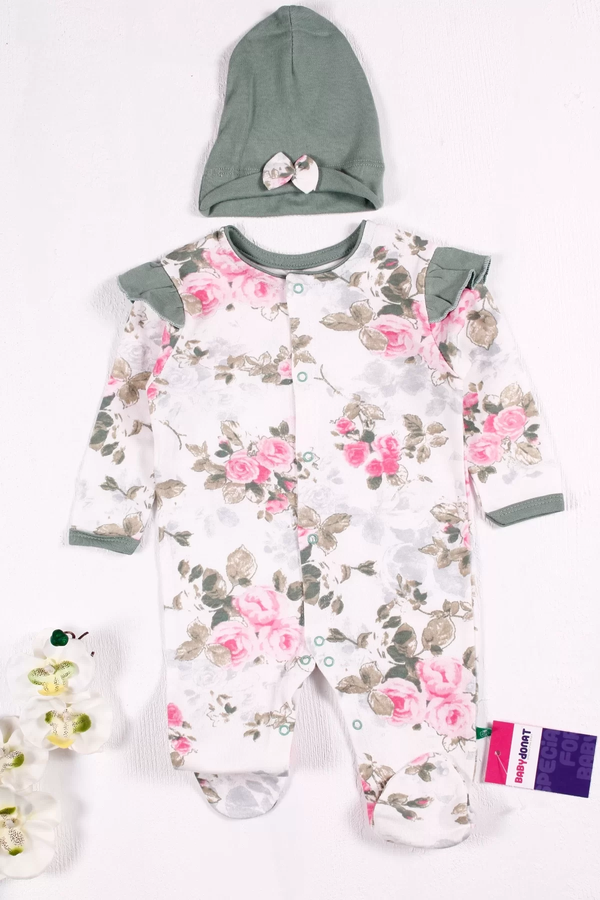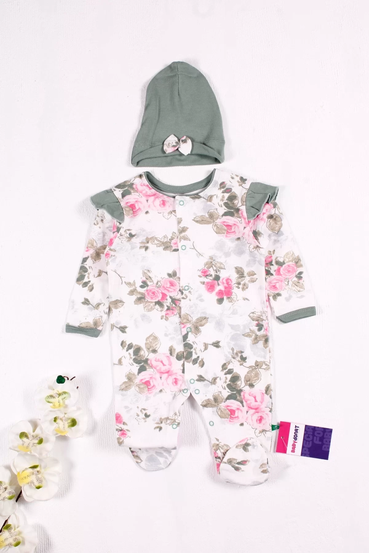 Çiçek Desenli Şapkalı Kız Bebek Tulumu