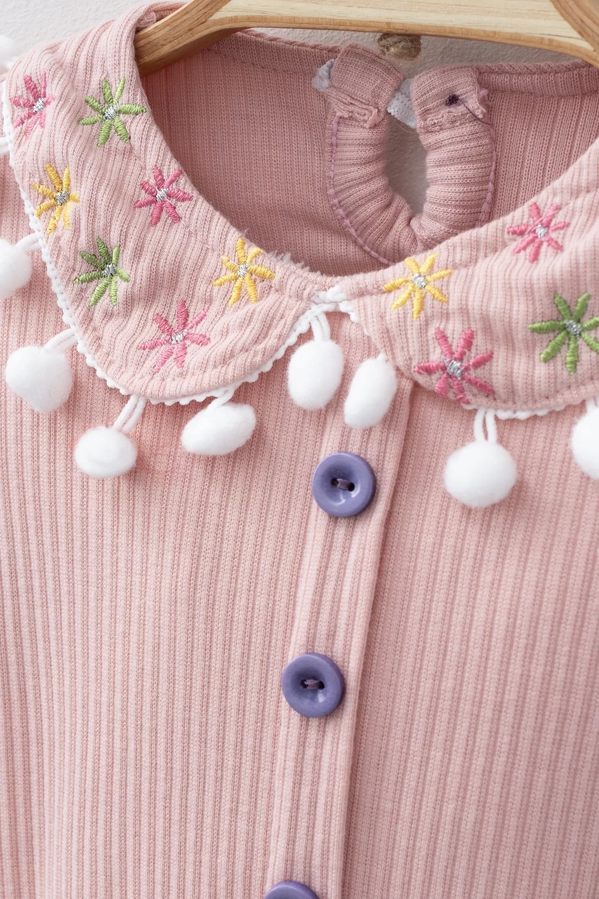 Çiçek Nakışlı Düşmeli Bandanalı Kız Bebek Takımı.