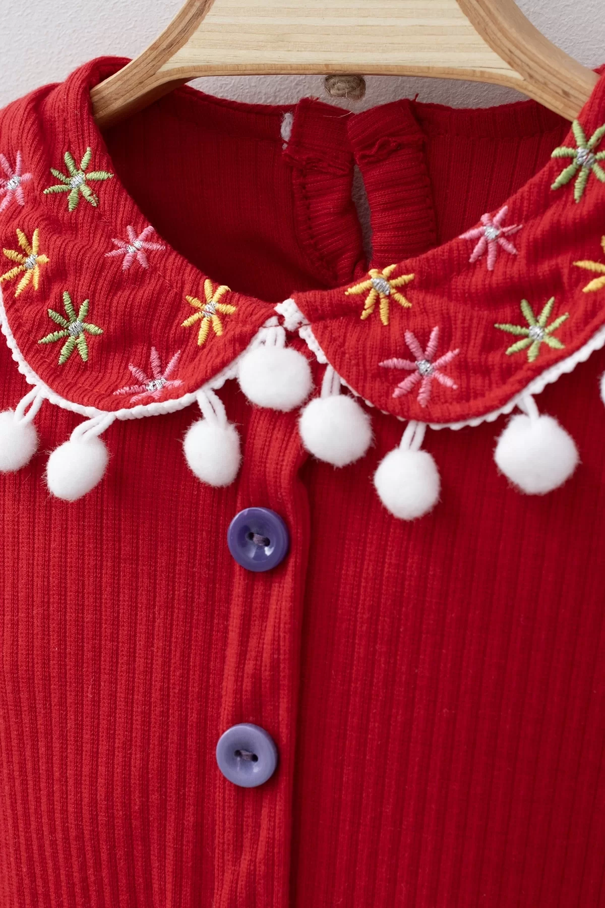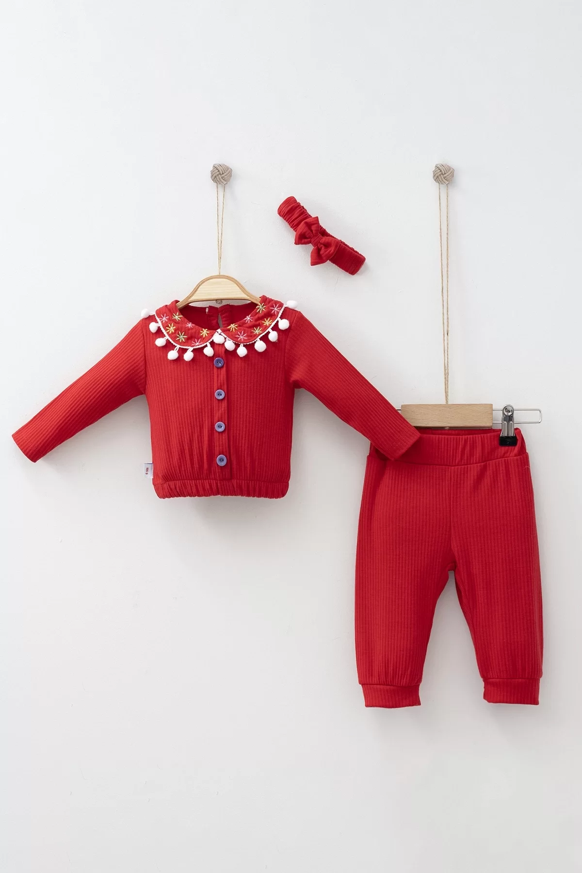 Çiçek Nakışlı Düşmeli Bandanalı Kız Bebek Takımı.