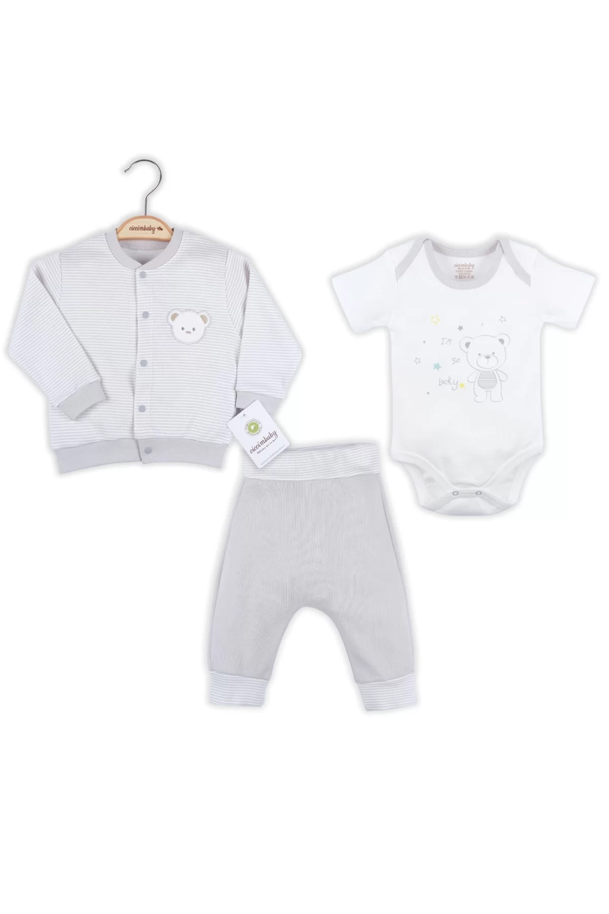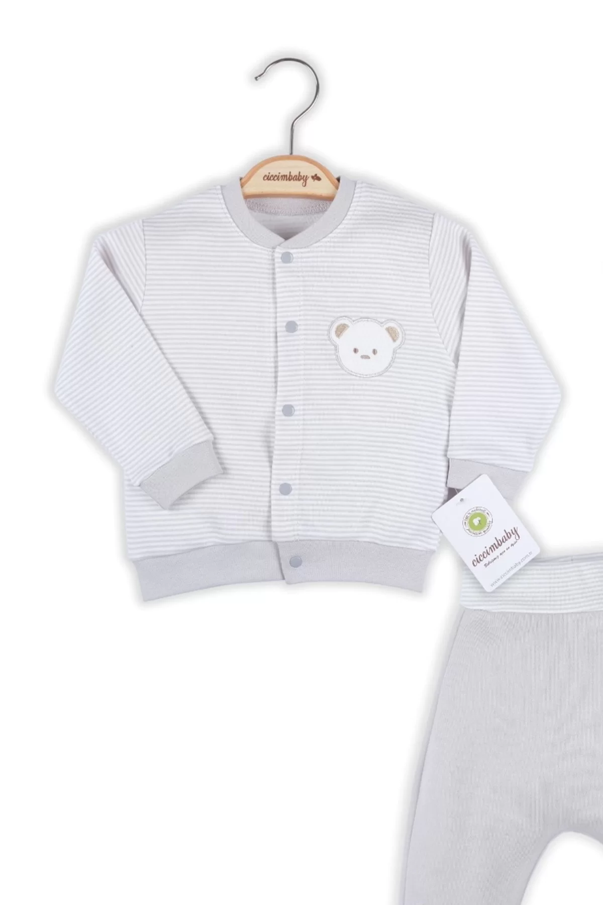 Çizgili Bear Hırkalı % 100 Pamuk Erkek Bebek Takım.