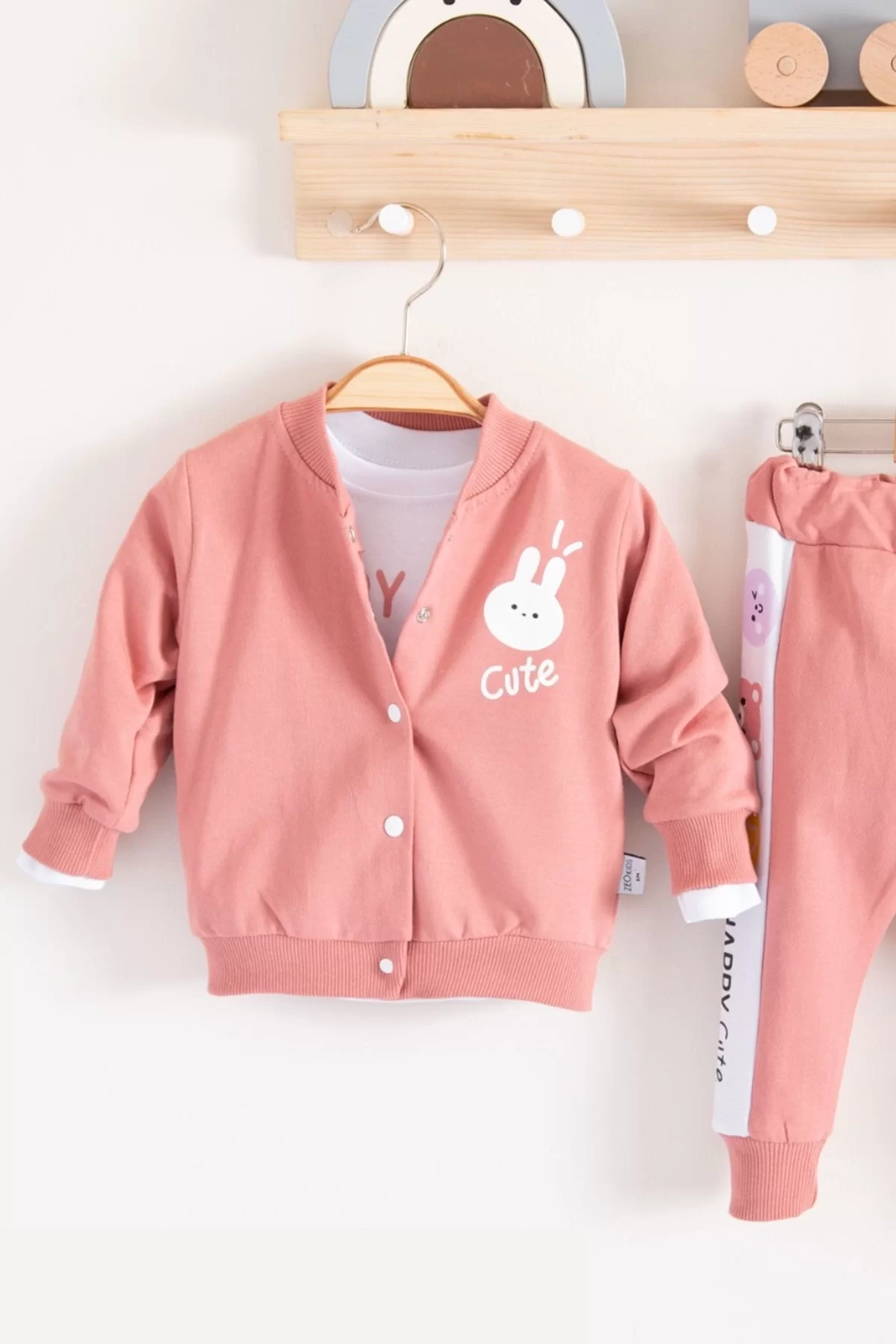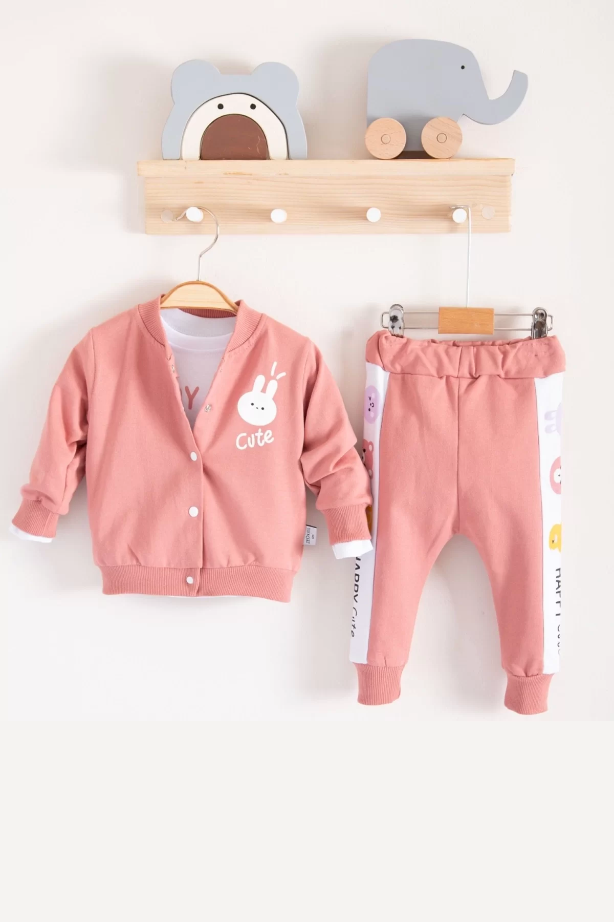 Cute Funny Desenli Kapişonlu Pamuklu 3’lü Kız Bebek Takımı