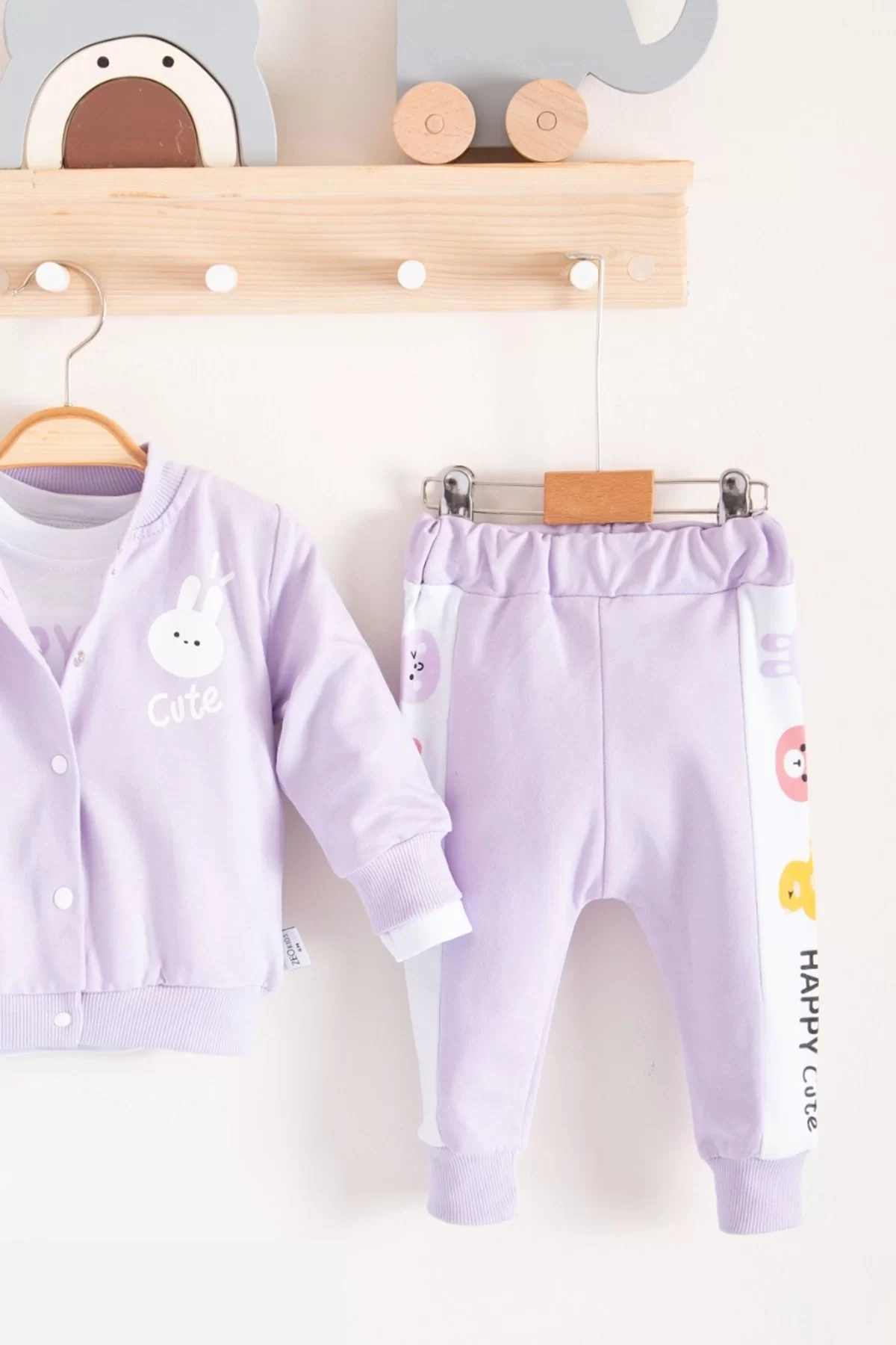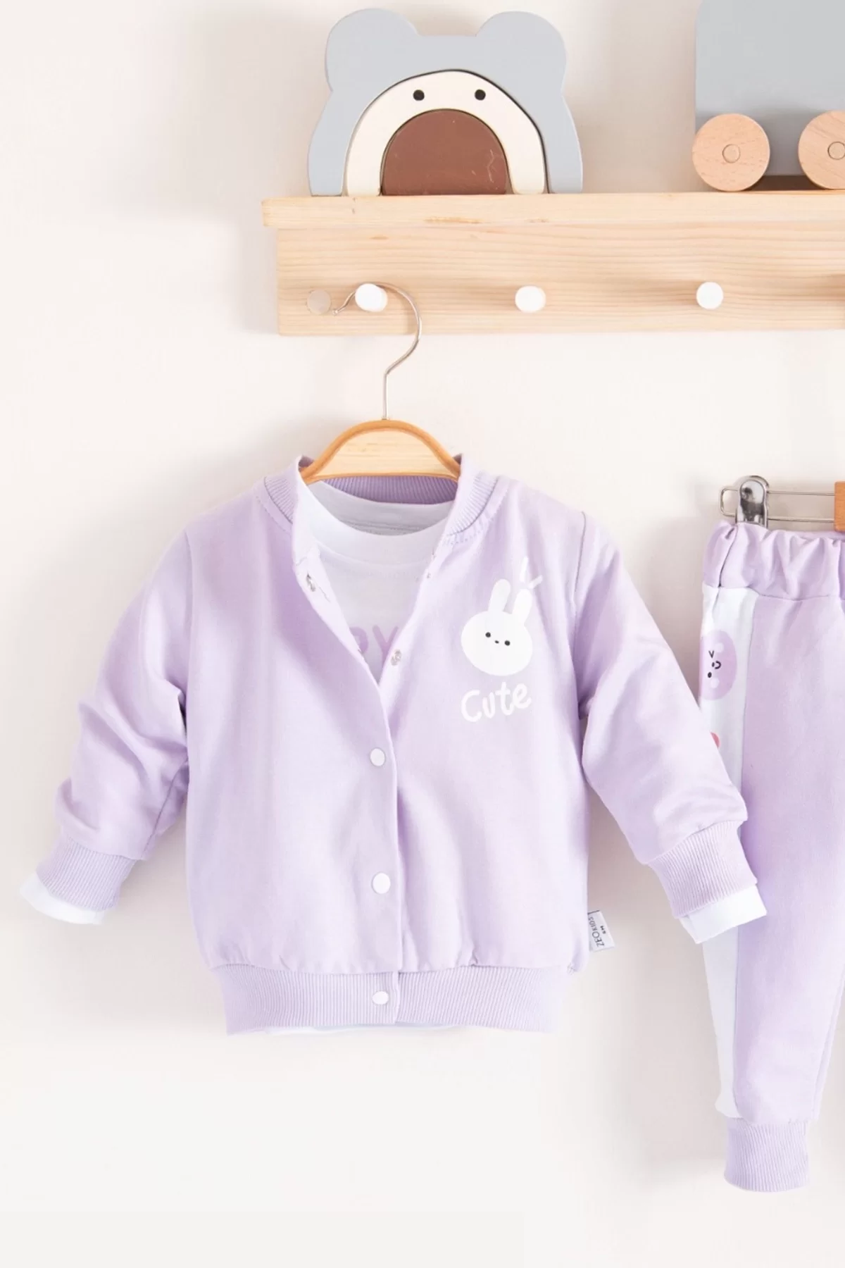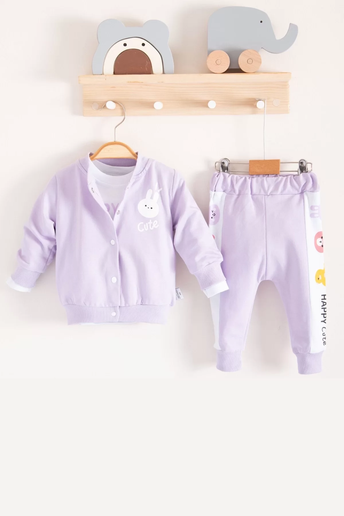 Cute Funny Desenli Kapişonlu Pamuklu 3’lü Kız Bebek Takımı