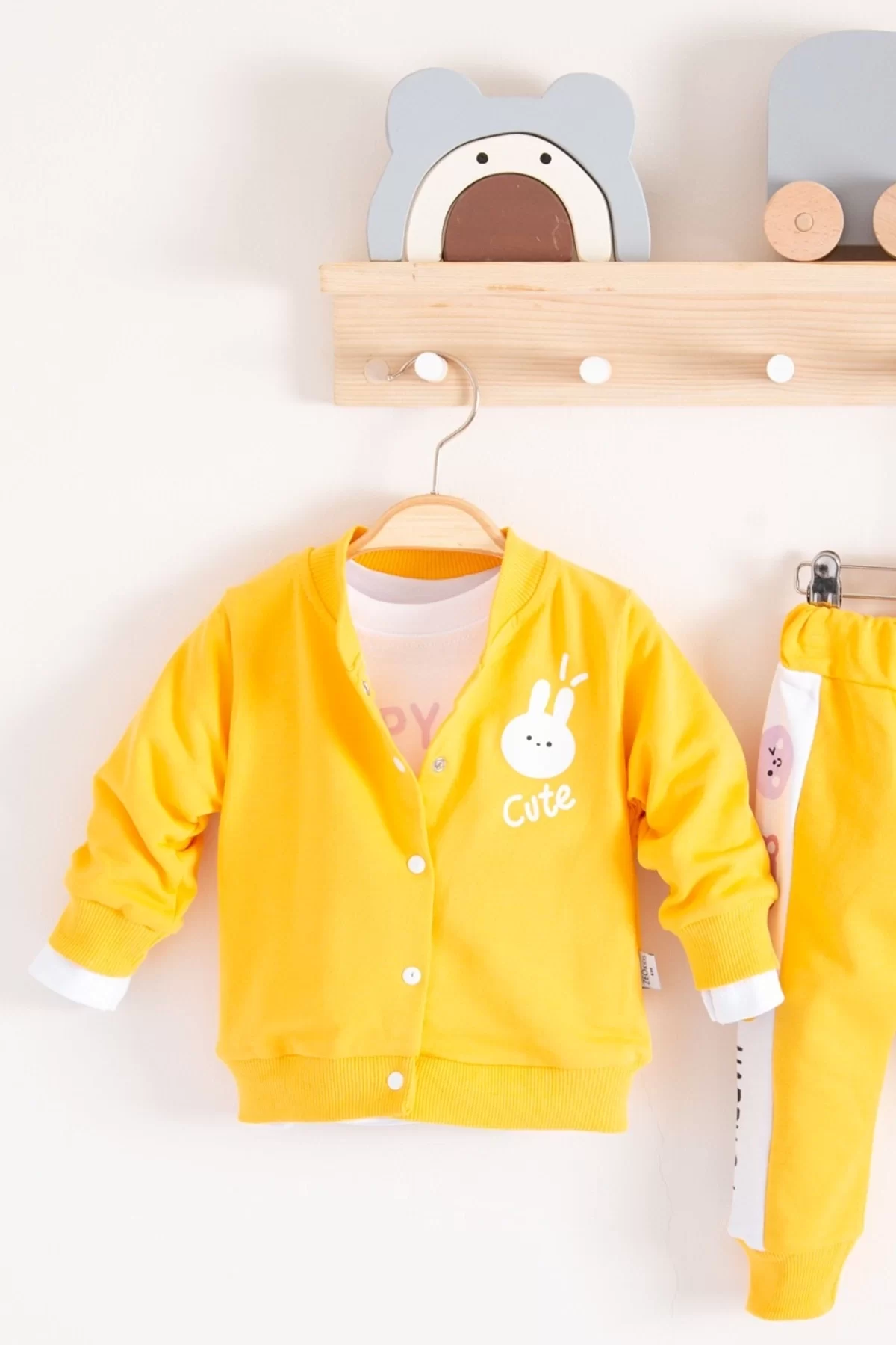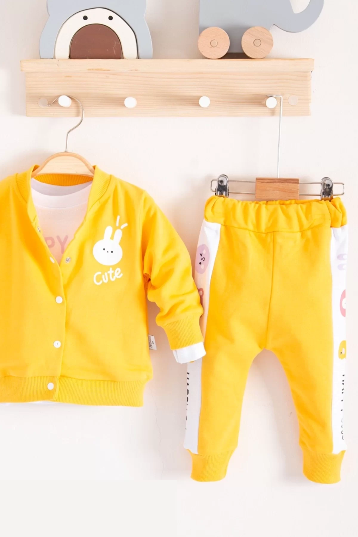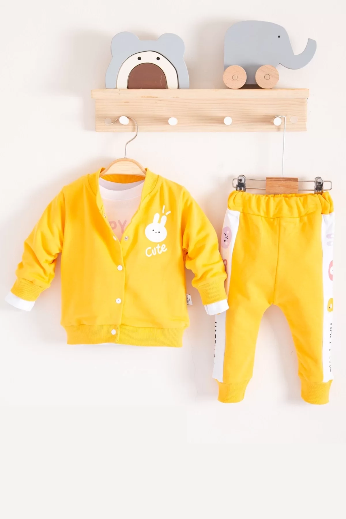 Cute Funny Desenli Kapişonlu Pamuklu 3’lü Kız Bebek Takımı