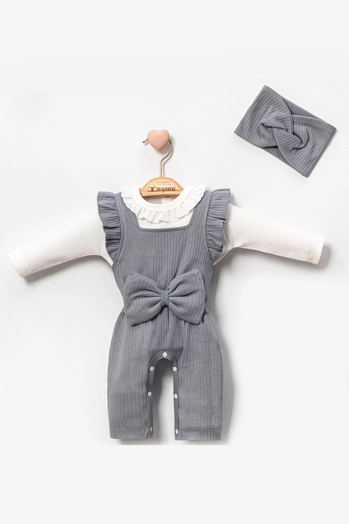 Dantel Yaka Detaylı Fiyonklu 2’Li Kız Bebek Salopet Tulum