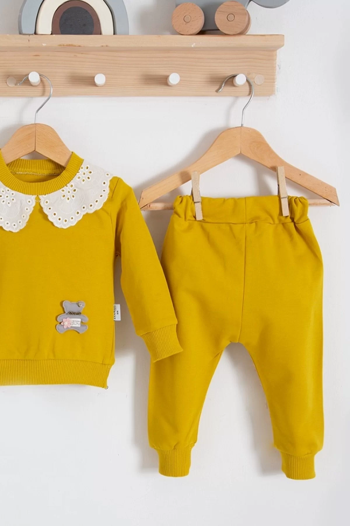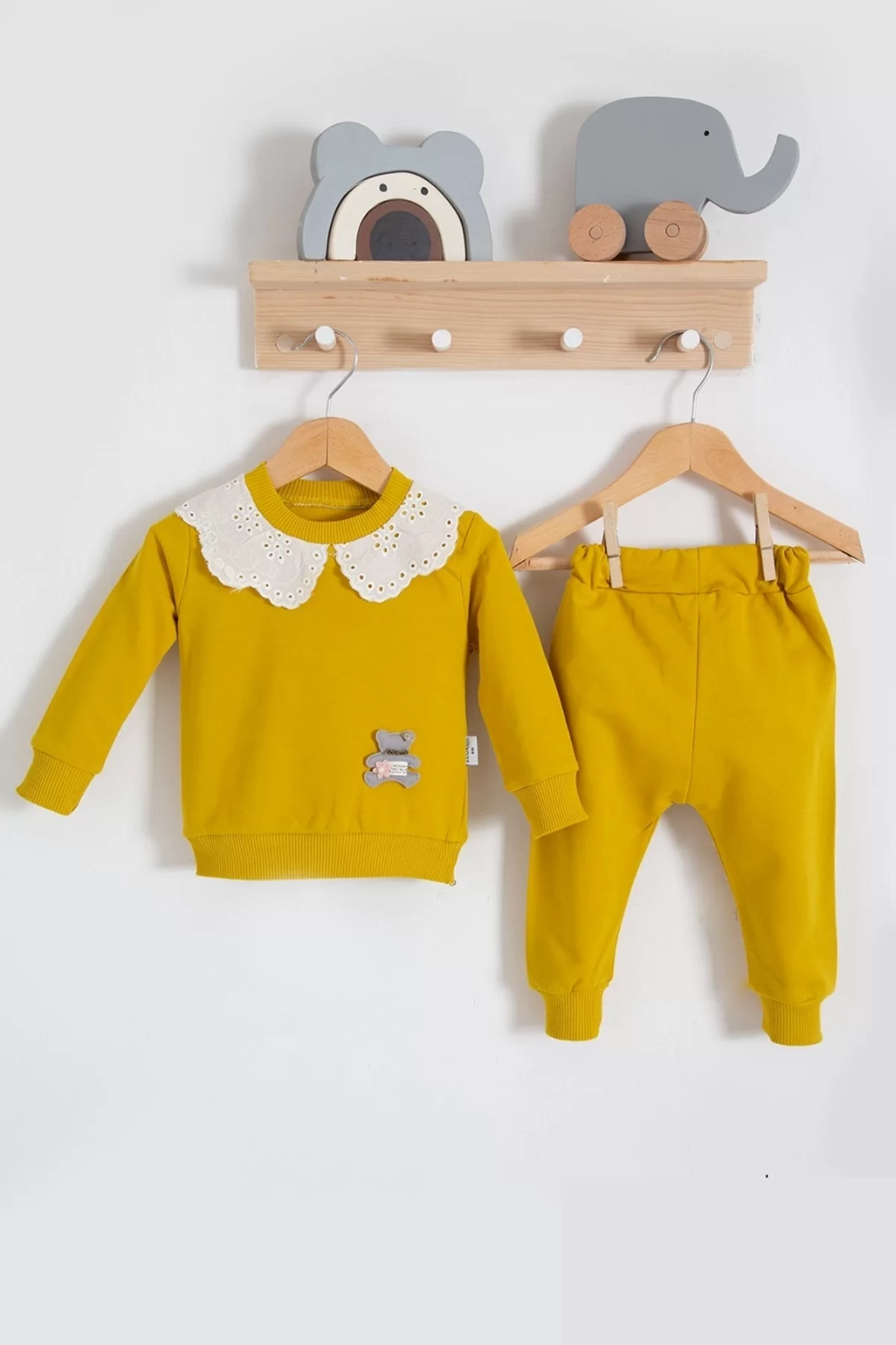 Dantel Yakalı Pamuklu 2’li Kız Bebek Takımı