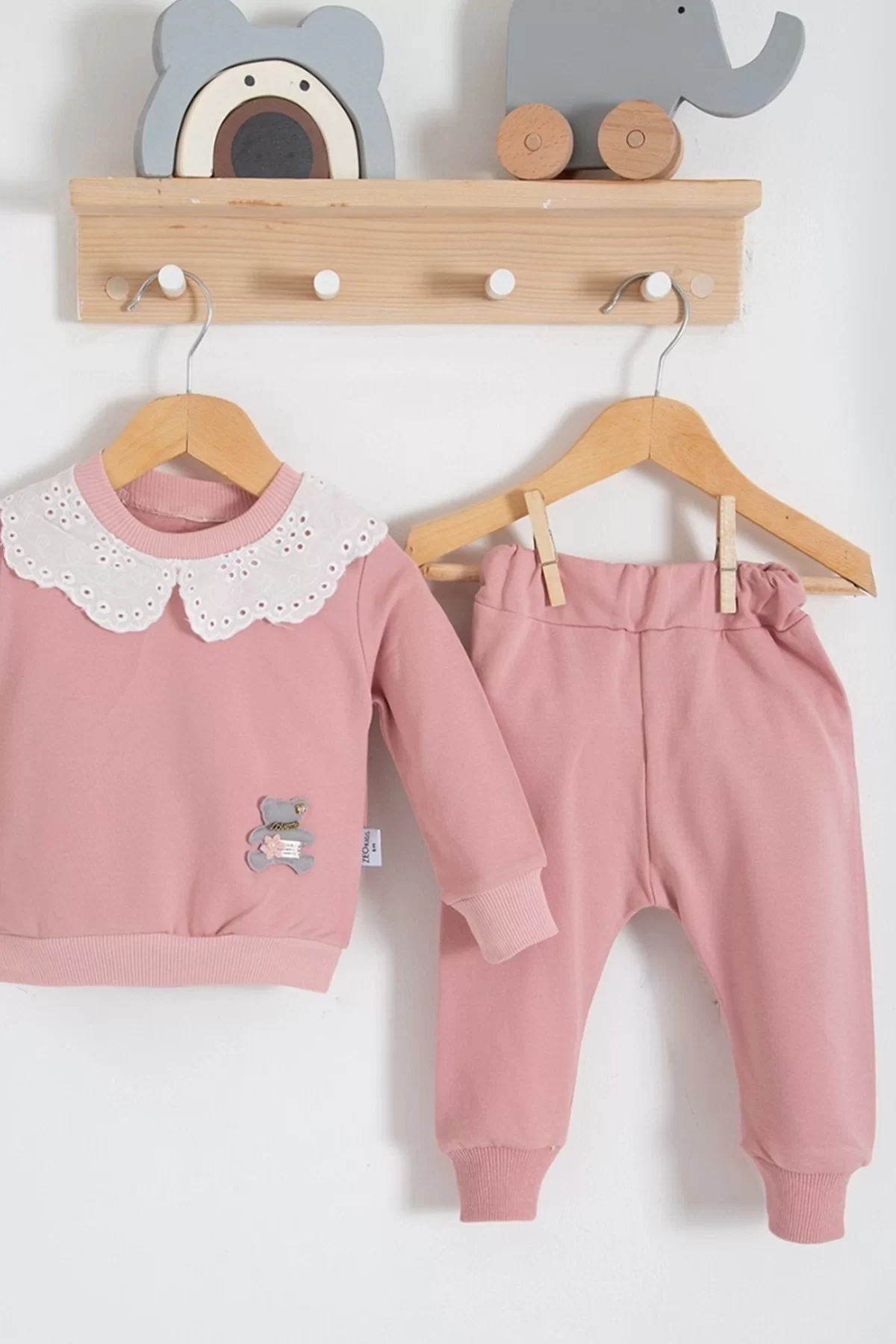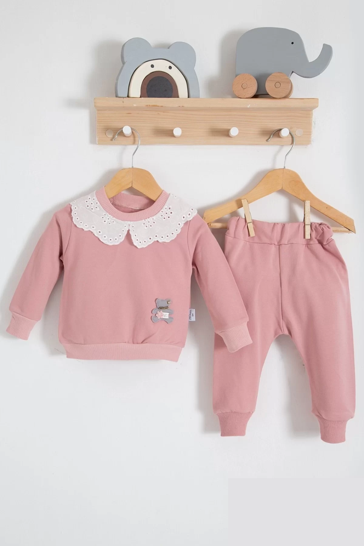 Dantel Yakalı Pamuklu 2’li Kız Bebek Takımı