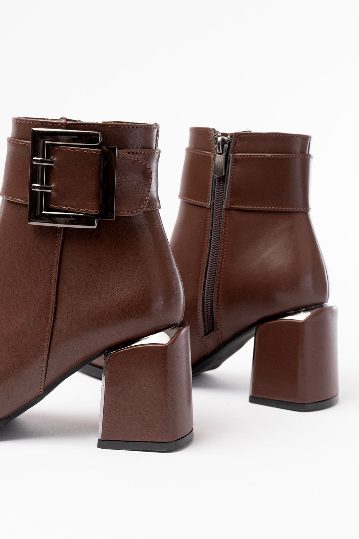 DNZ-400 Kahverengi Toka Aksesuarlı Topuklu Fermuarlı Günlük Kadın Bot