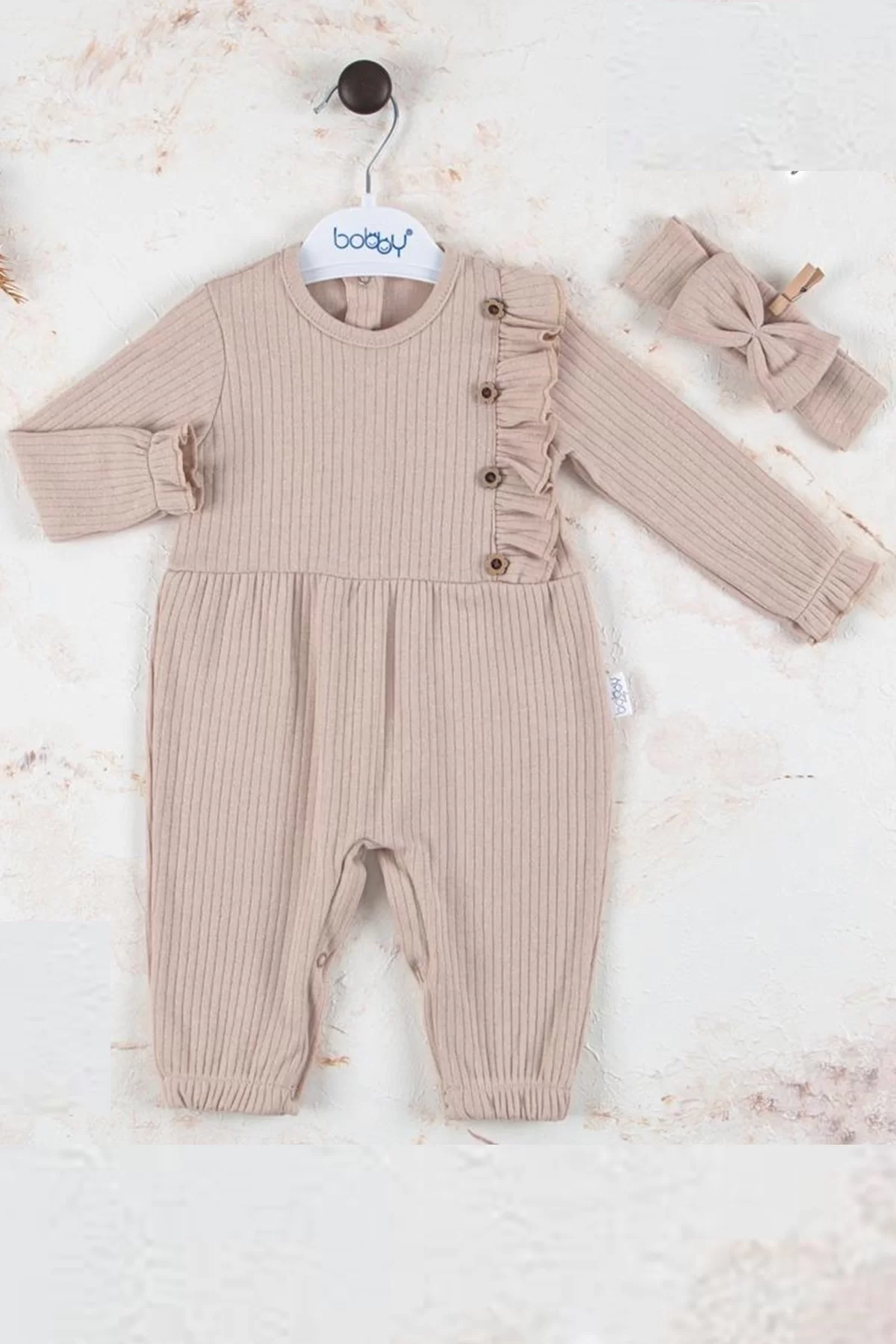 Düğme Detaylı Bandanalı % 100 Pamuk Kız Bebek Tulumu