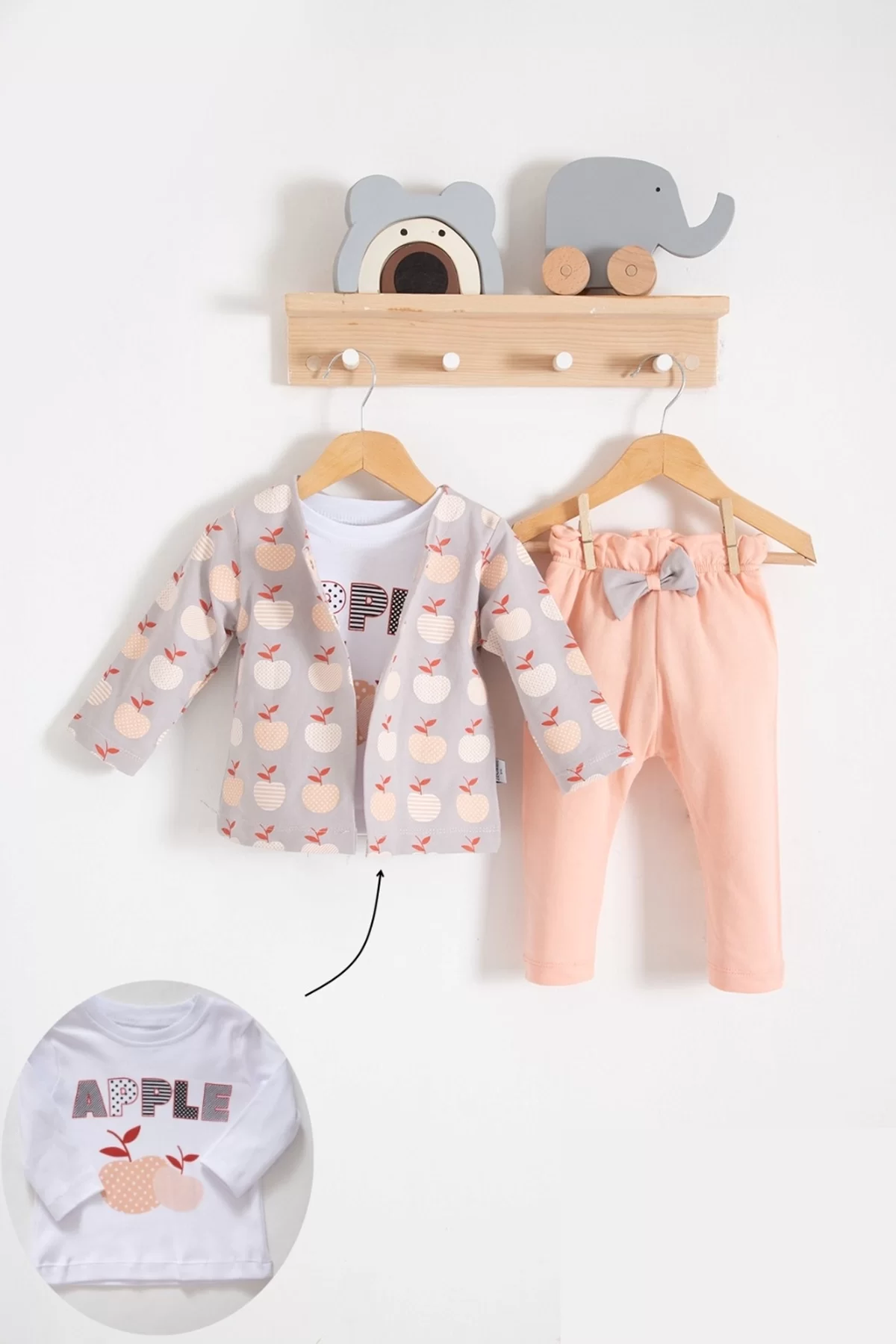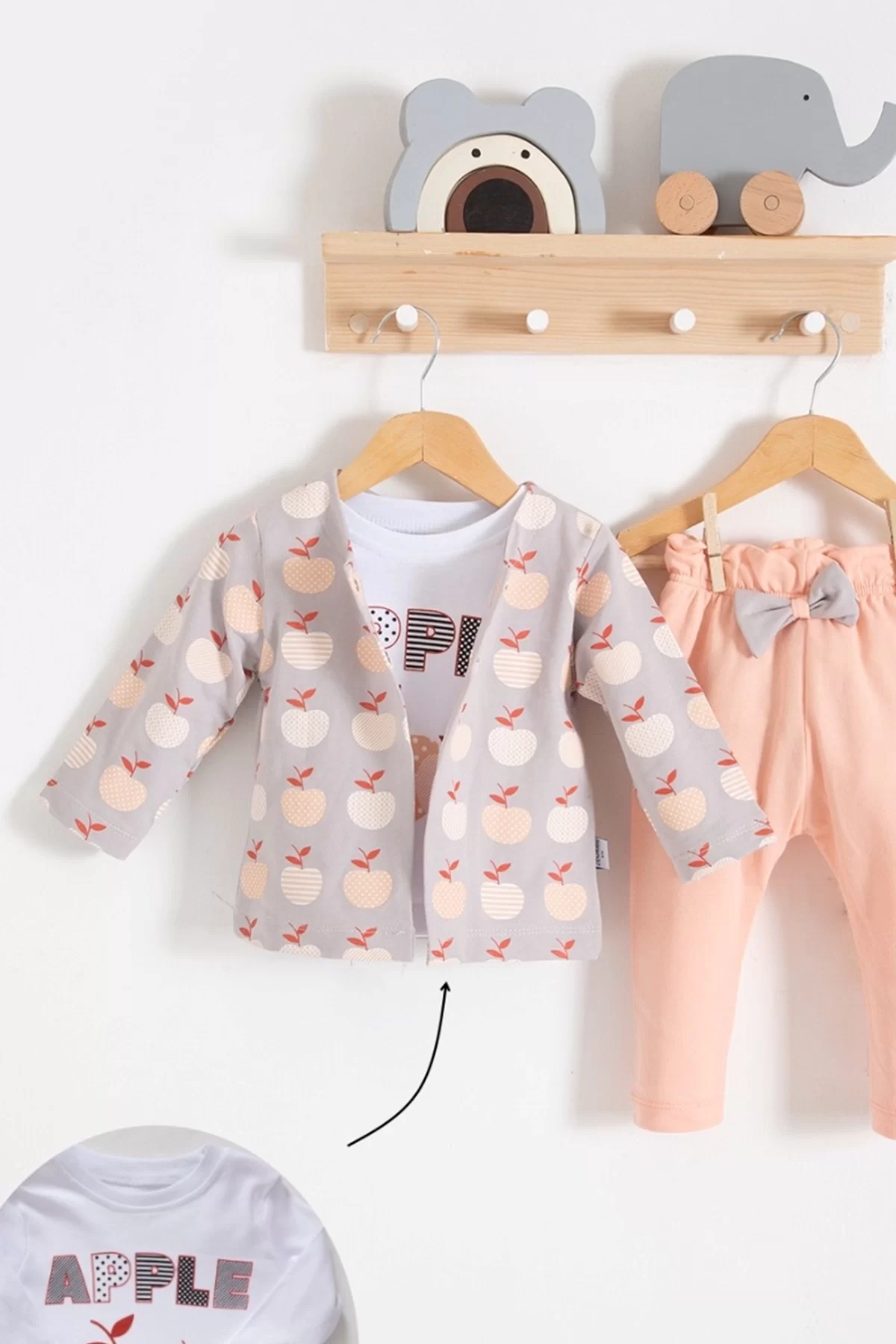 Elma Desenli Ceketli 3’lü Kız Bebek Takımı