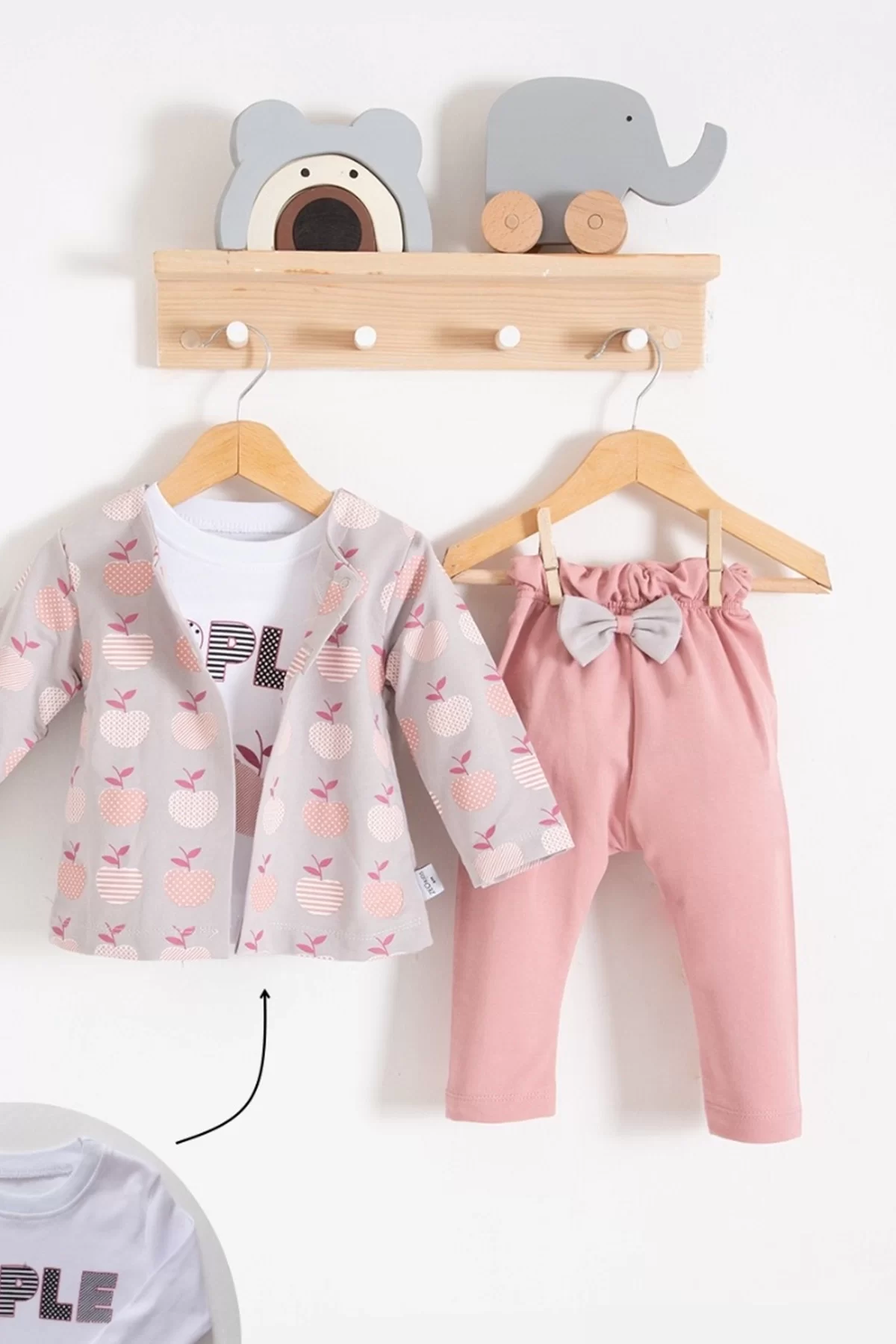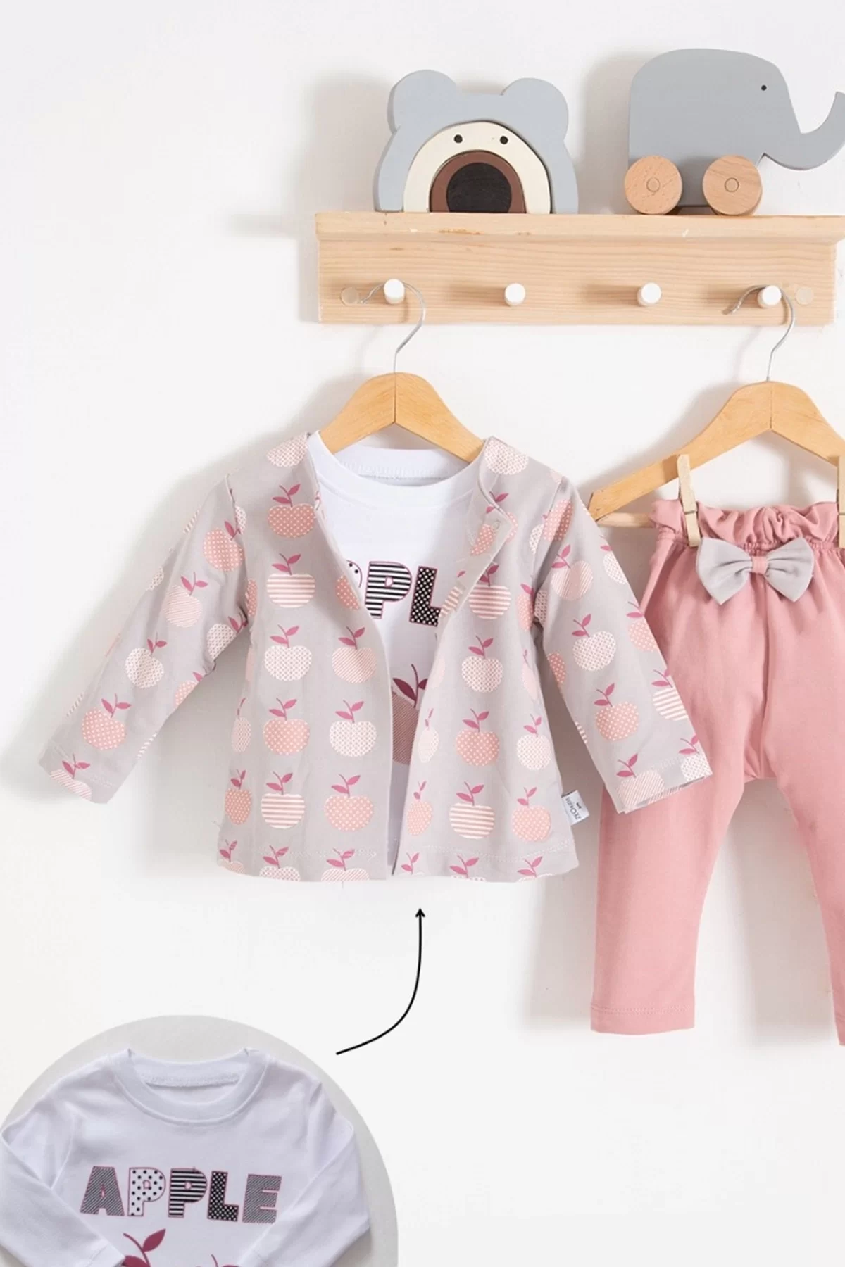 Elma Desenli Ceketli 3’lü Kız Bebek Takımı