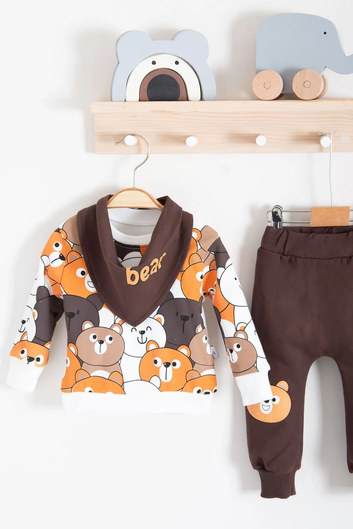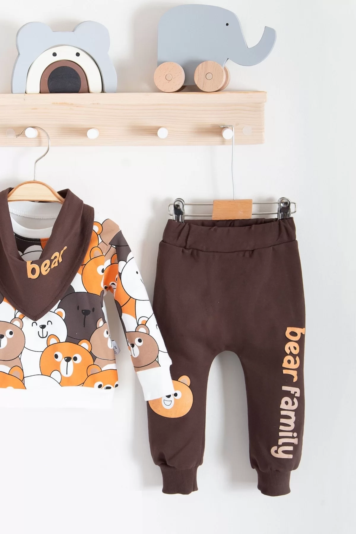 Family Bears Desenli 3’lü Fularlı Erkek Bebek Takımı
