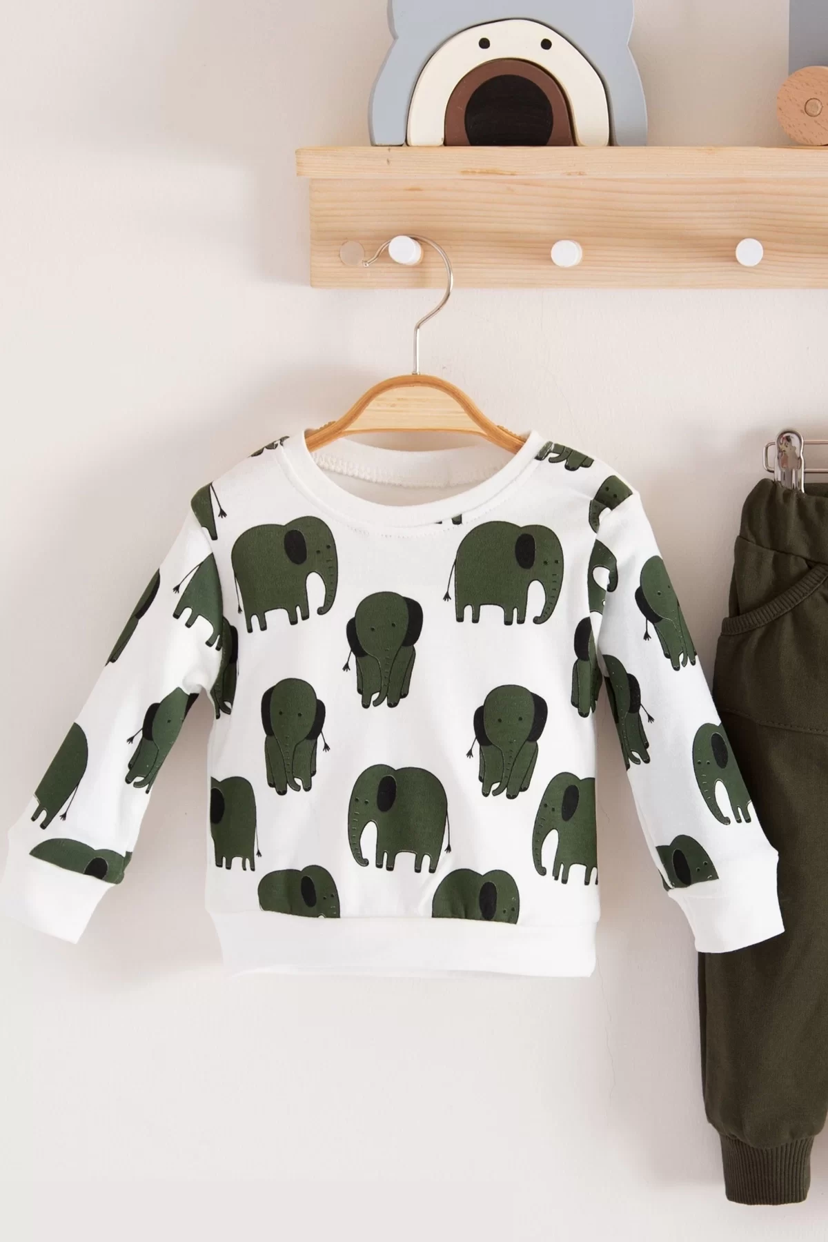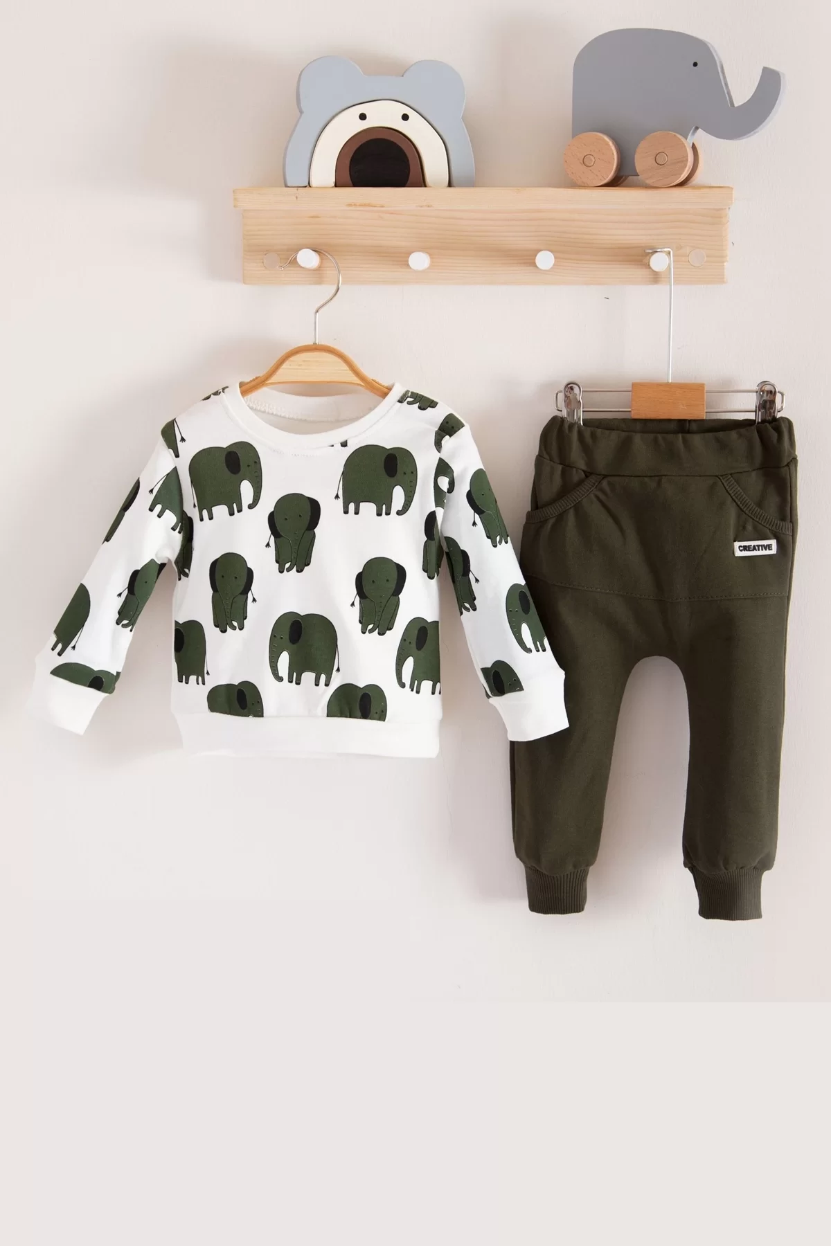 Fil Desenli 2’li % 100 Pamuk Erkek Bebek Takımı