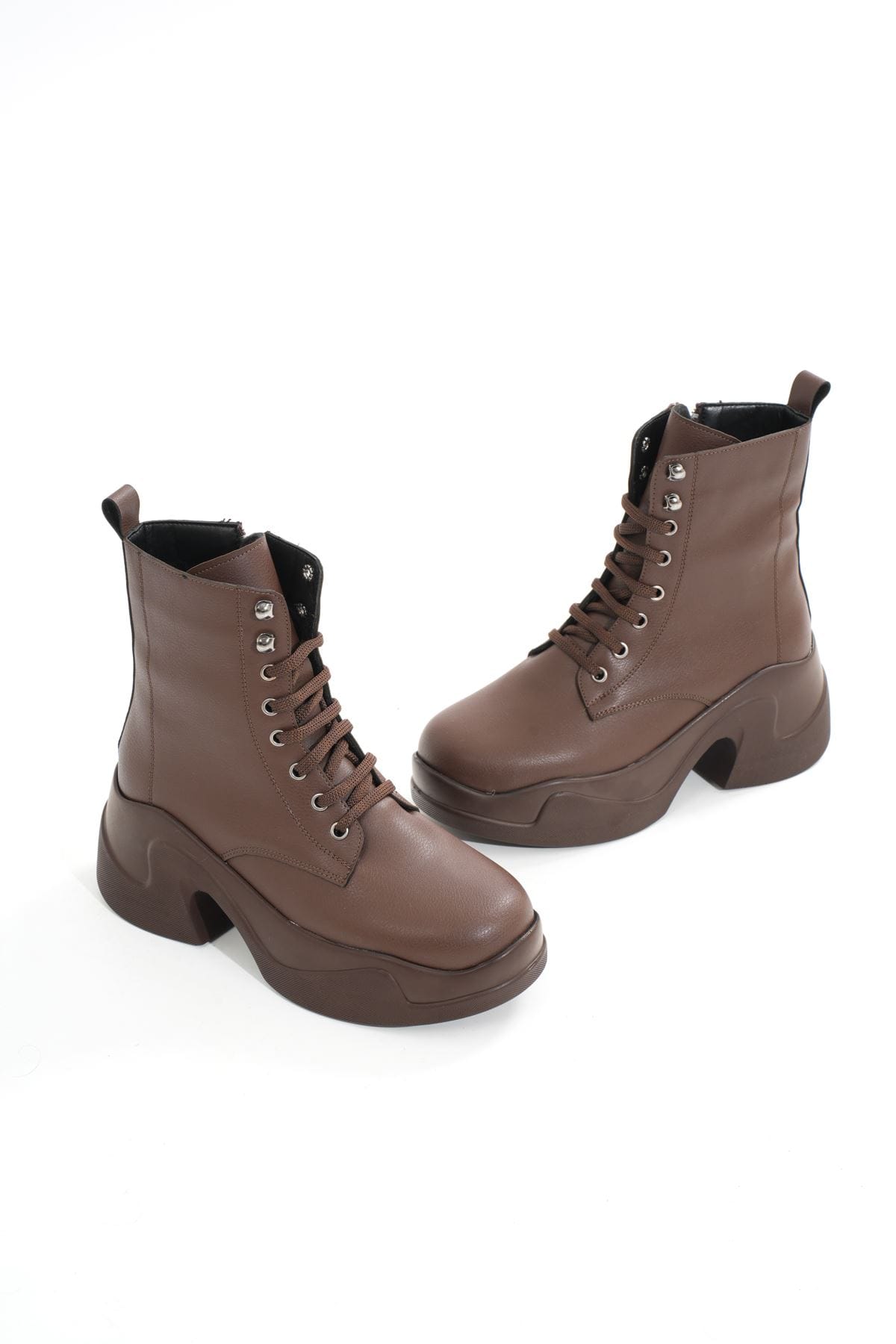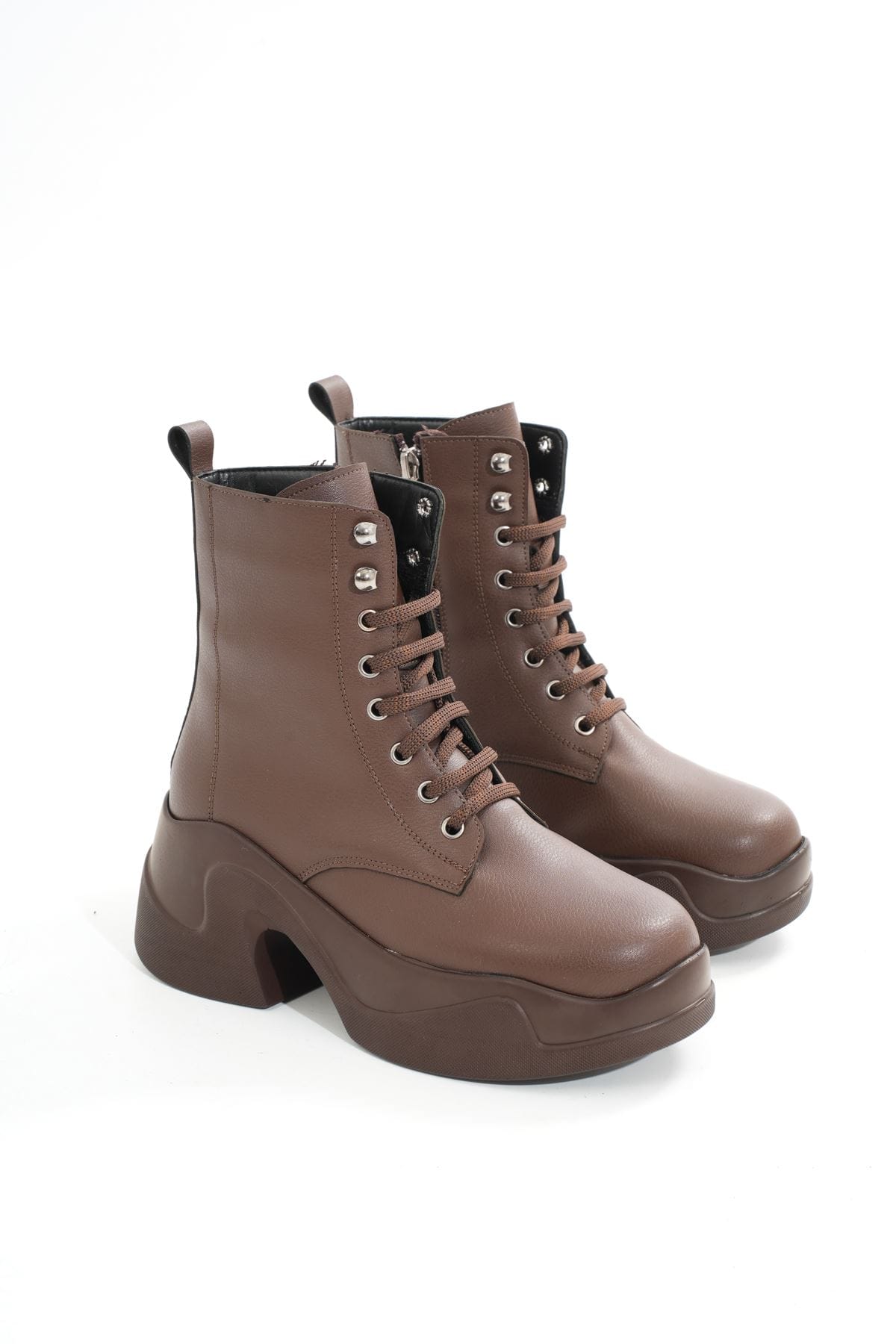 FZ-2550 Kahverengi Yüksek Tabanlı Bağcıklı Fermuarlı Günlük Kadın Bot