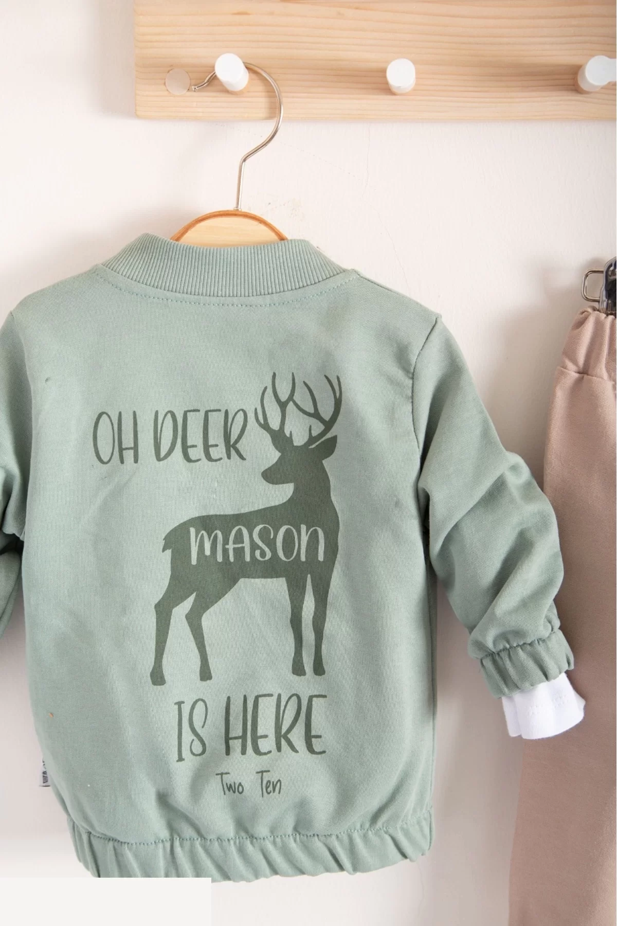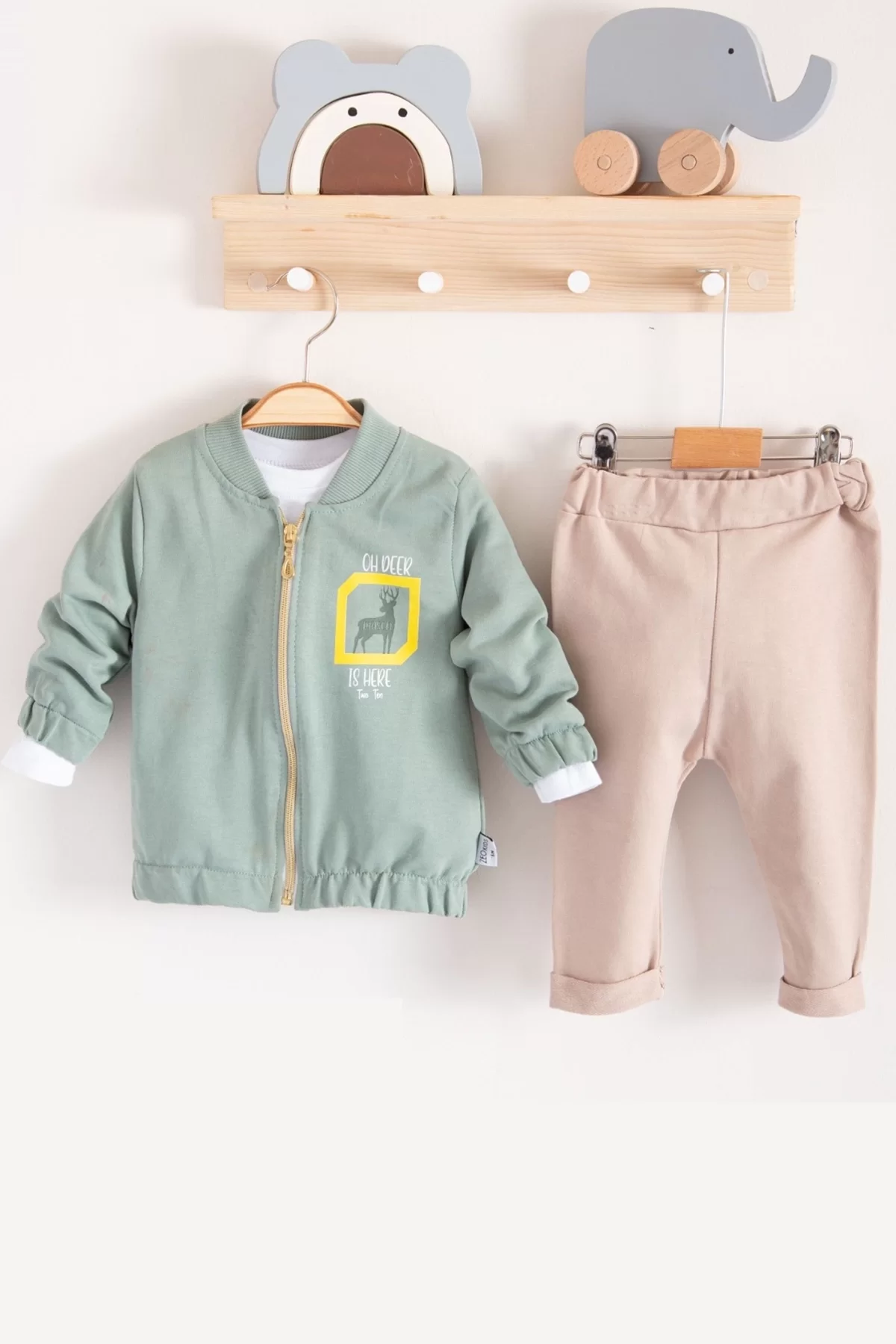 Geyik Desenli Hırkalı 3’lü Erkek Bebek Takım.
