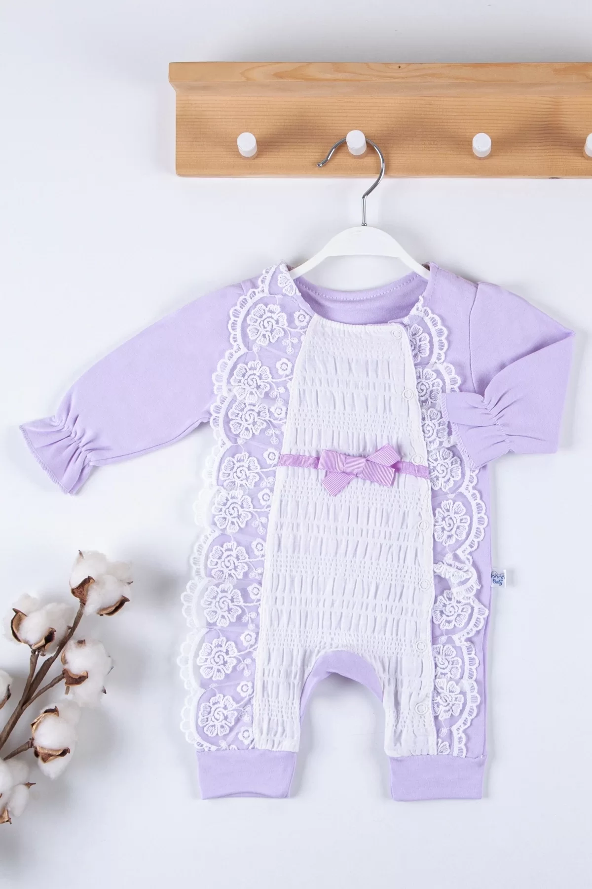 Çiçek Nakışlı Şapkalı % 100 Pamuk Kız Bebek Tulumu.