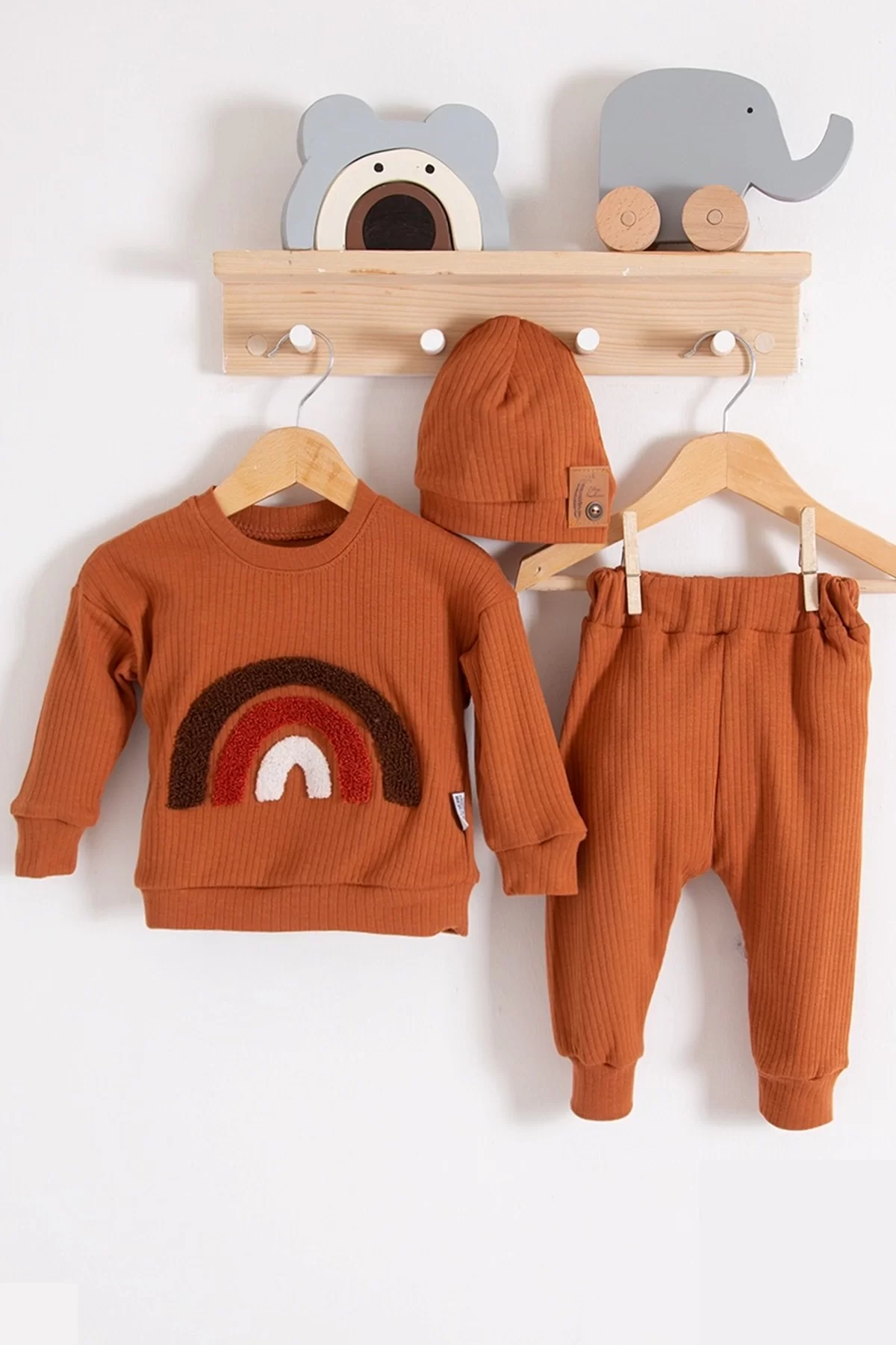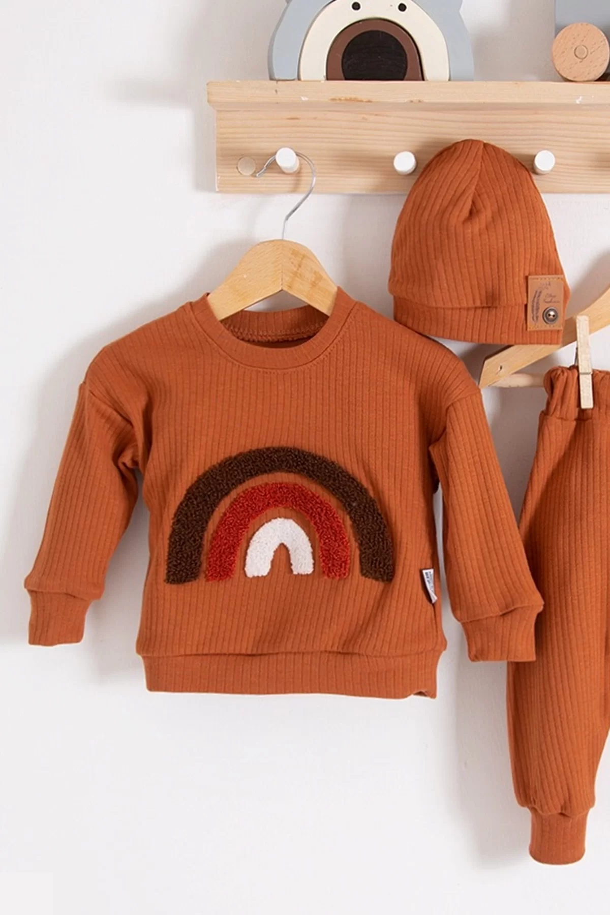 Gökkuşağı Nakışlı 2’li % 100 Pamuk Kız Bebek Takımı