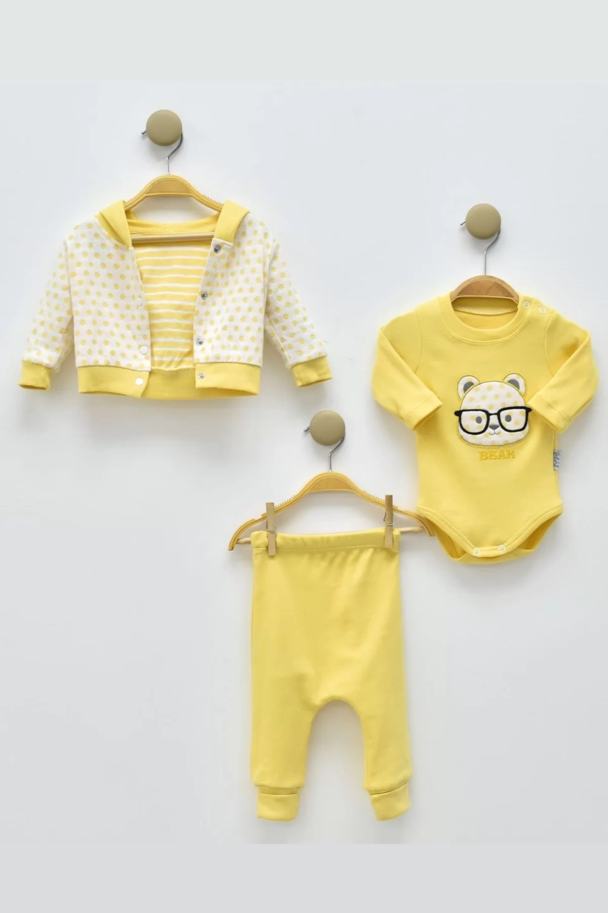 Gözlüklü Bear Puan Desenli 3’lü Erkek Bebek Takımı