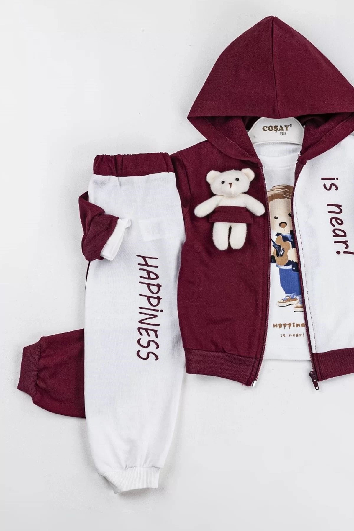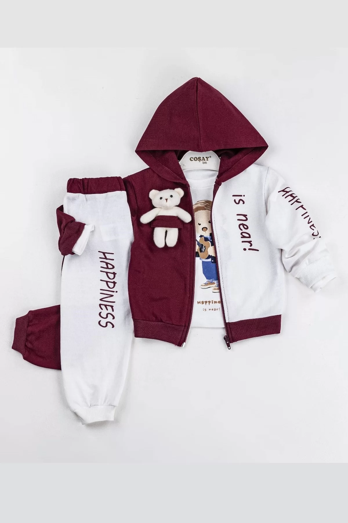 Happiness Bear Aksesuarlı Kapişonlu Erkek Bebek Takım