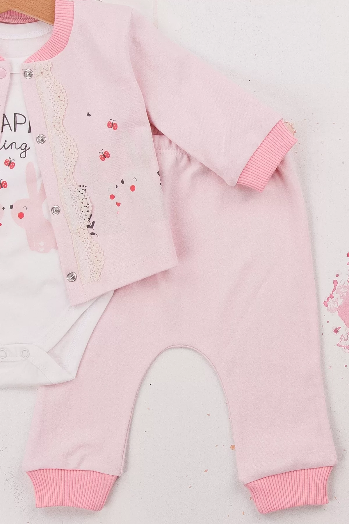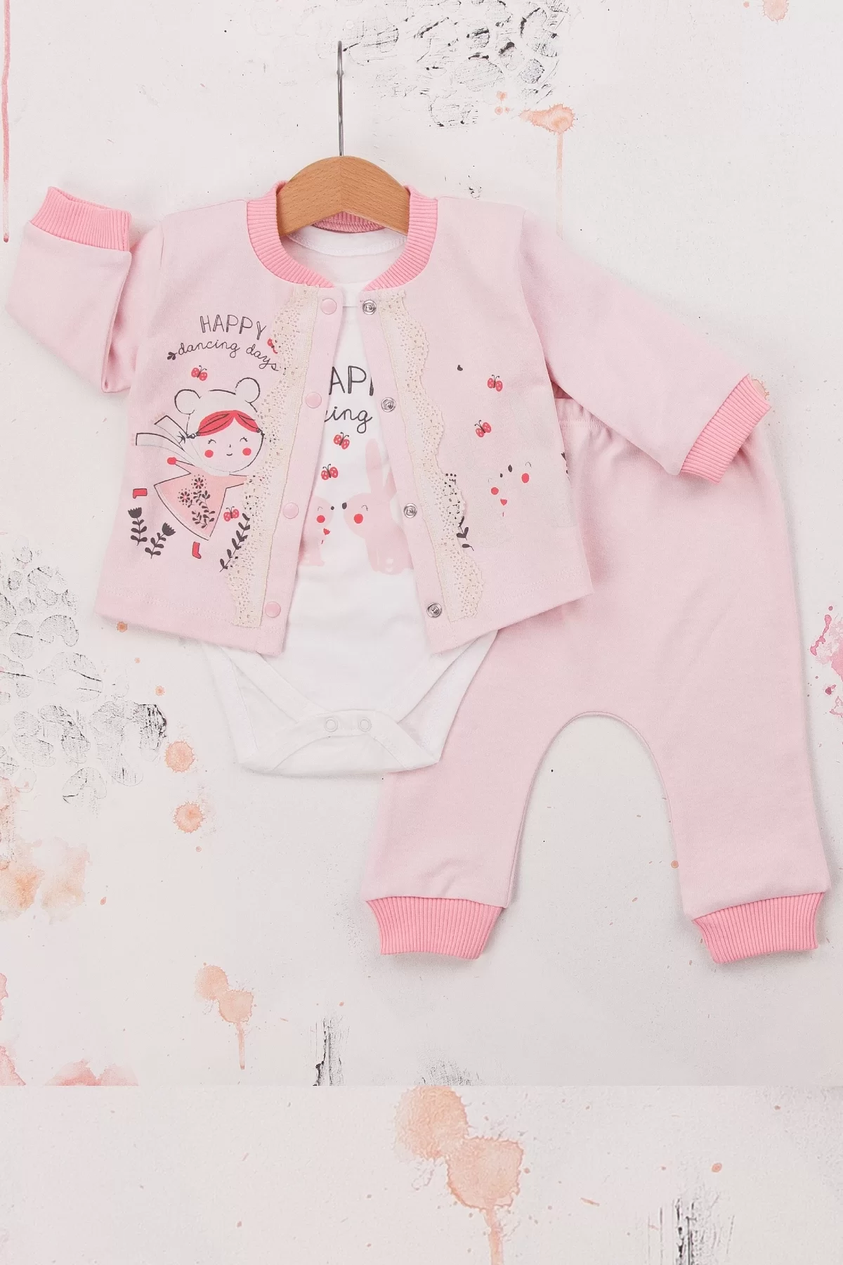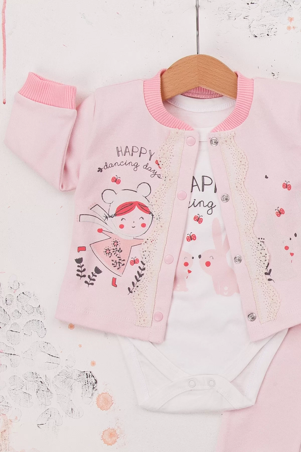 Happy Dancing Desenli 3’lü Hırkalı Kız Bebek Takım