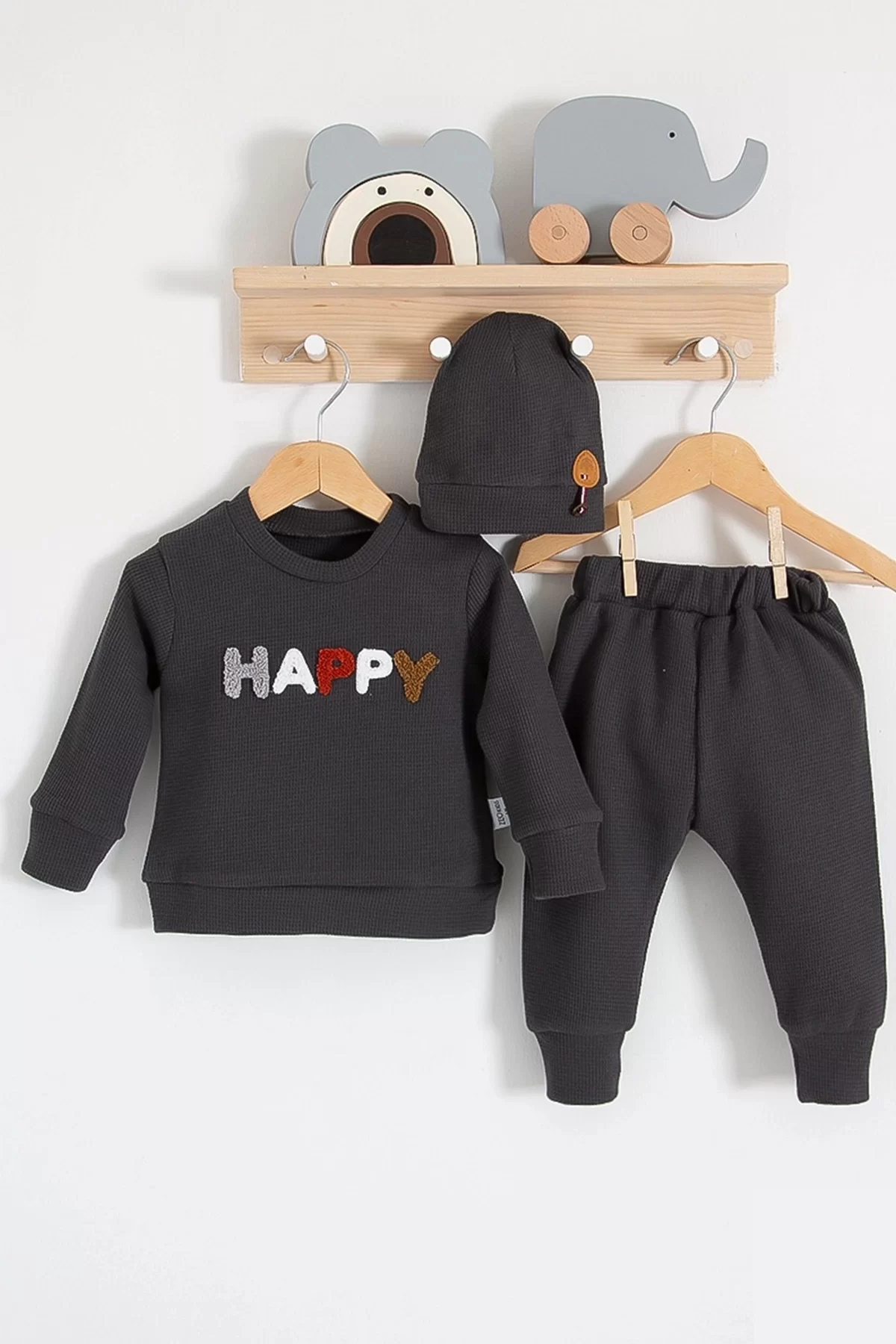 Happy Nakışlı 2’li Pamuklu Erkek Bebek Takım