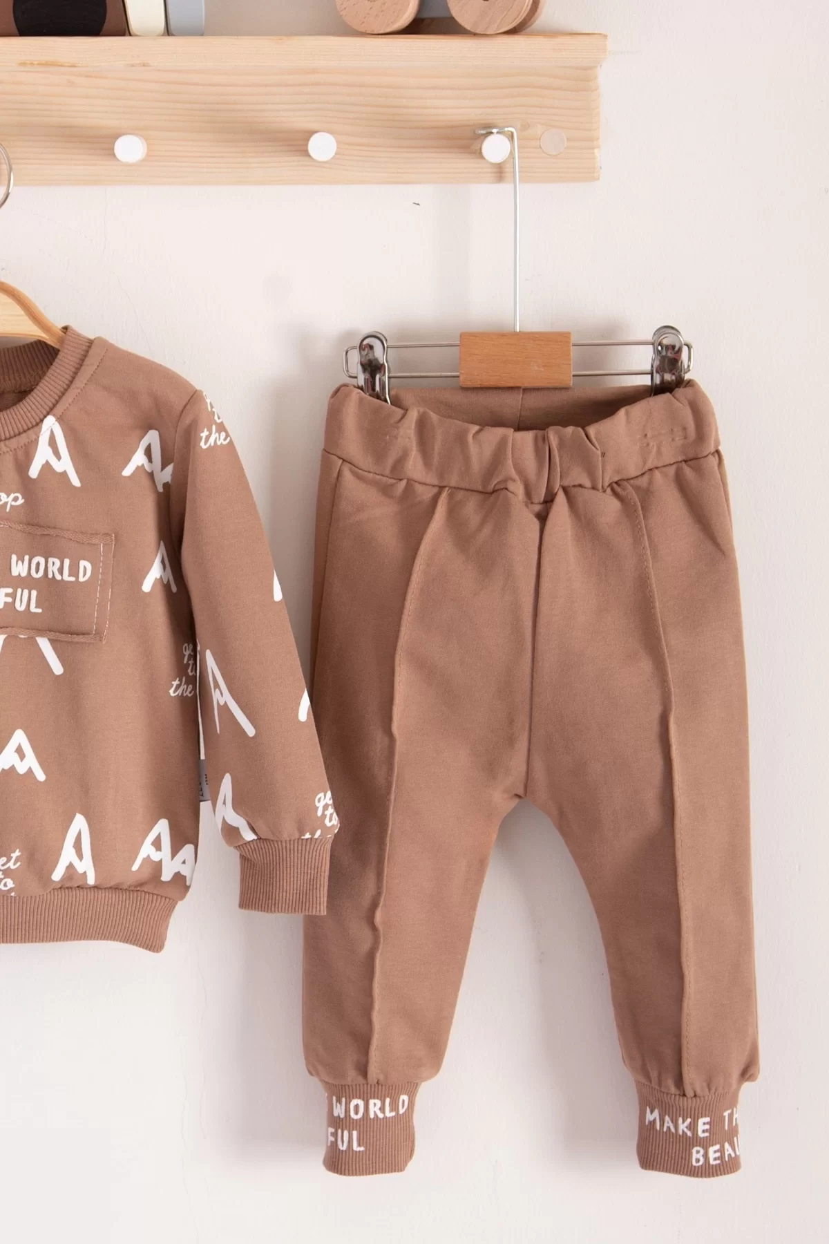 Harf Baskılı 2’li % 100 Pamuk Erkek Bebek Takımı.