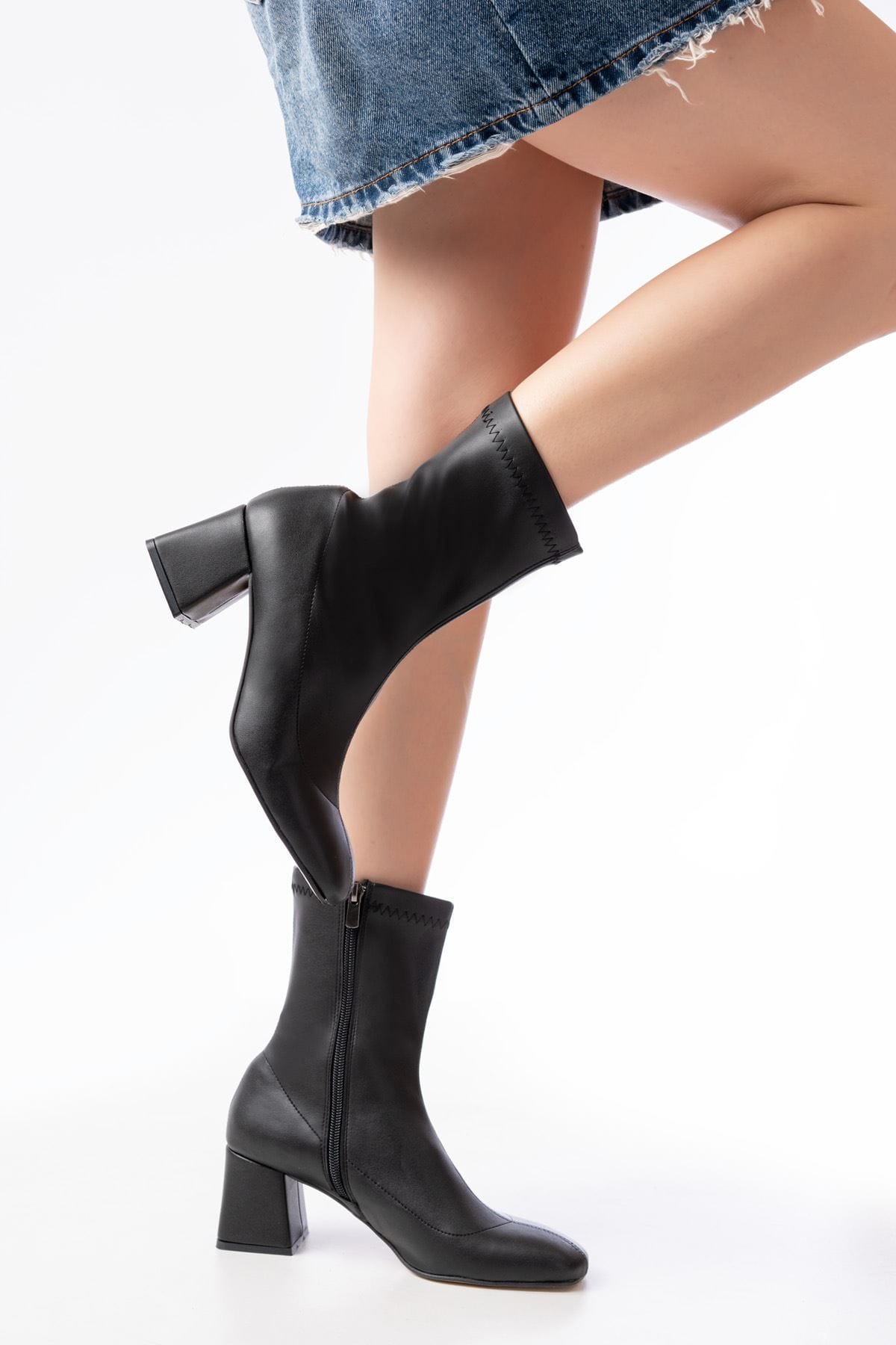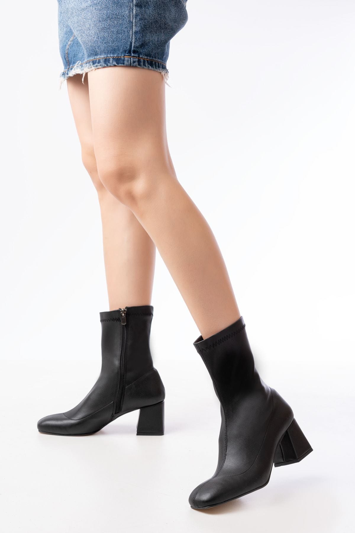 HC-2700 Siyah Streç Topuklu Fermuarlı Günlük Kadın Bot