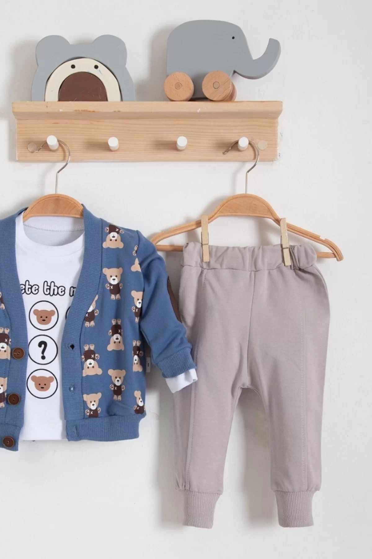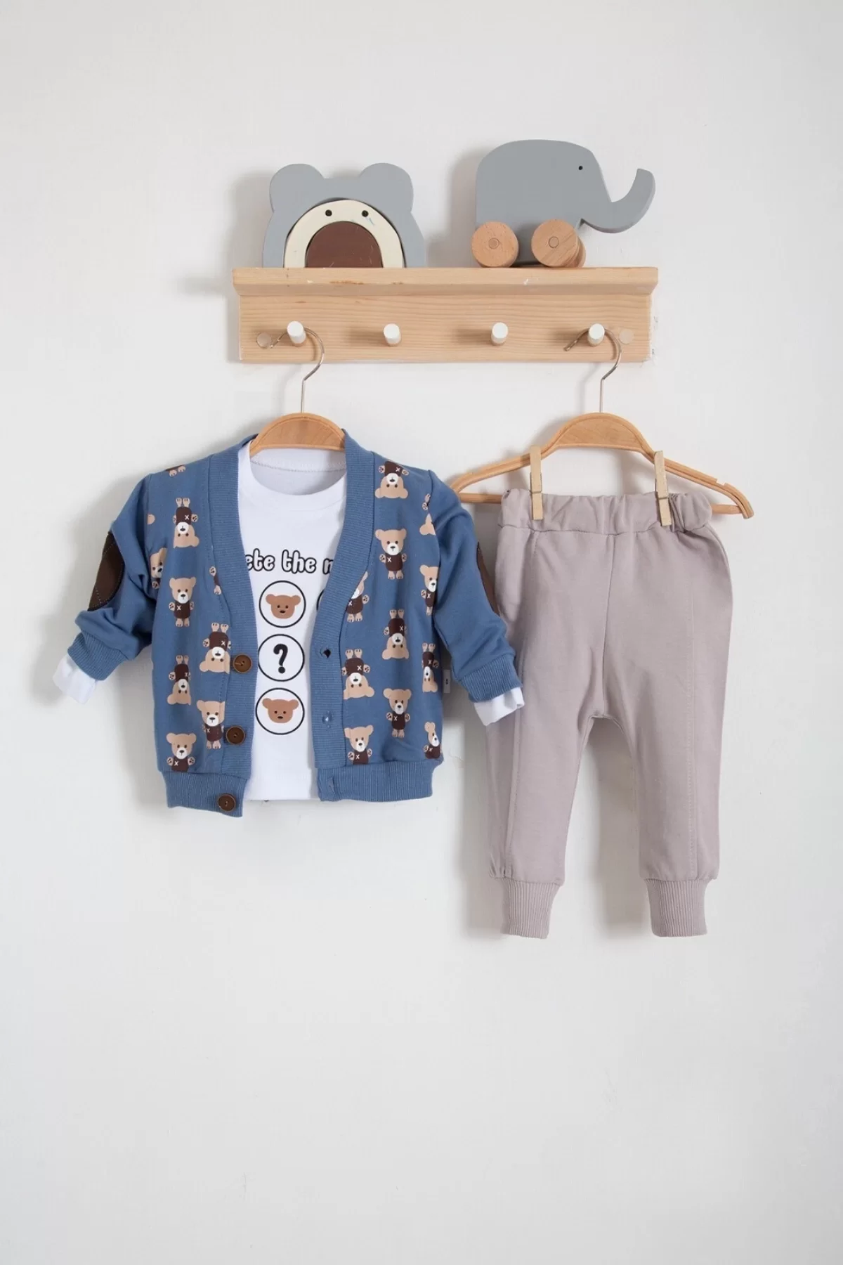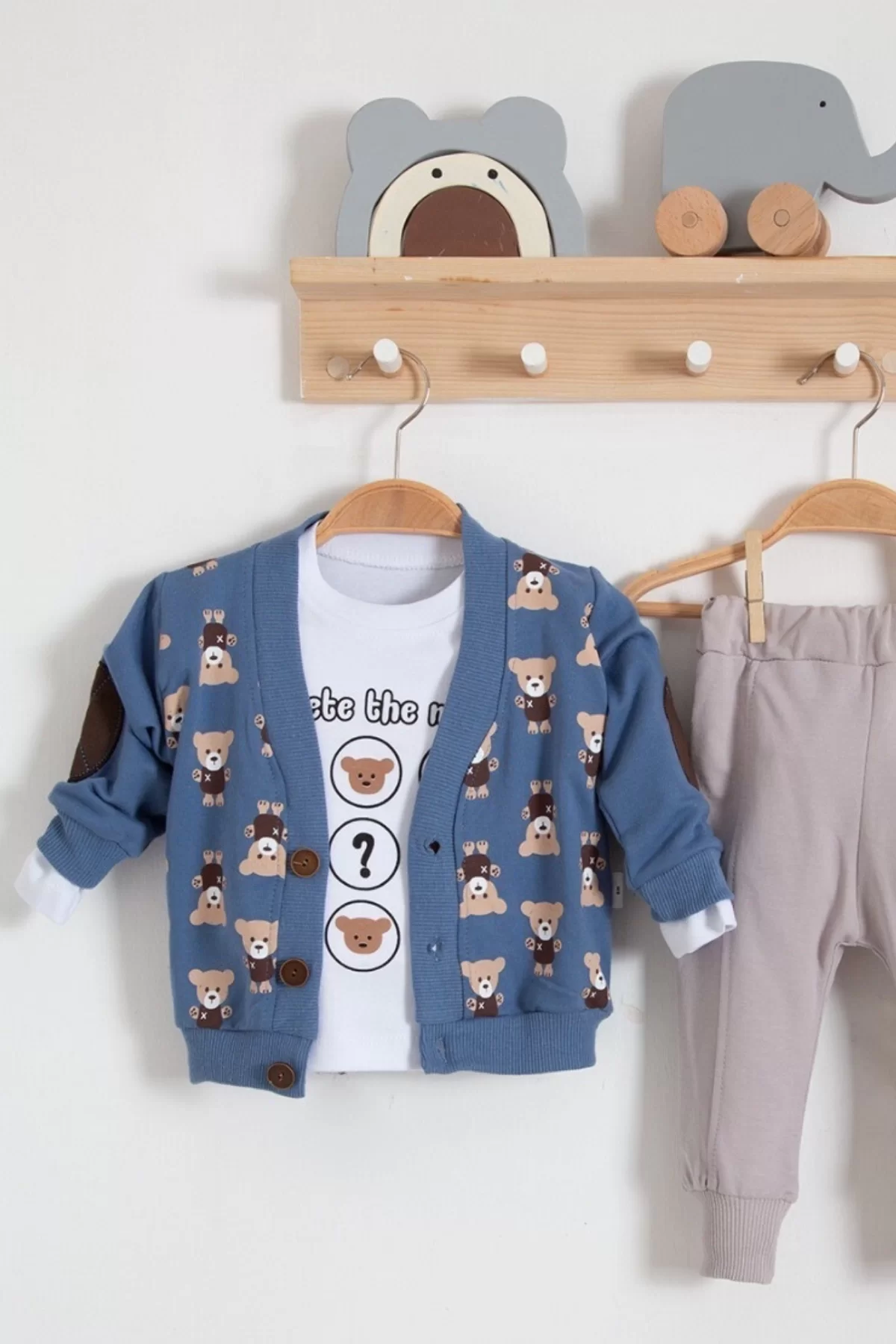 Hırkalı Bear Desenli 3’lü Erkek Bebek Takımı