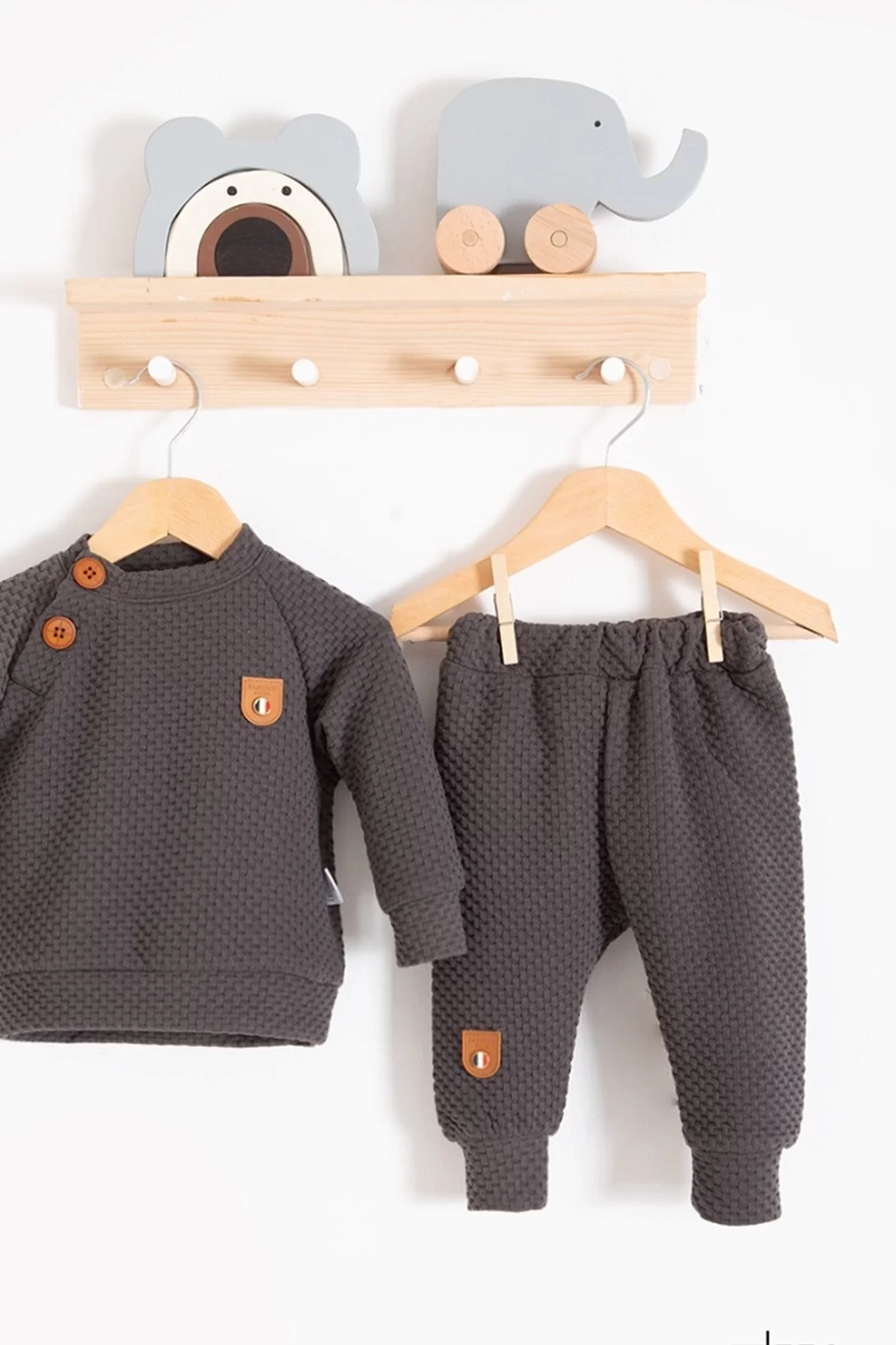 Jakarlı Omuzdan Düğmeli 2’li Erkek Bebek Takımı