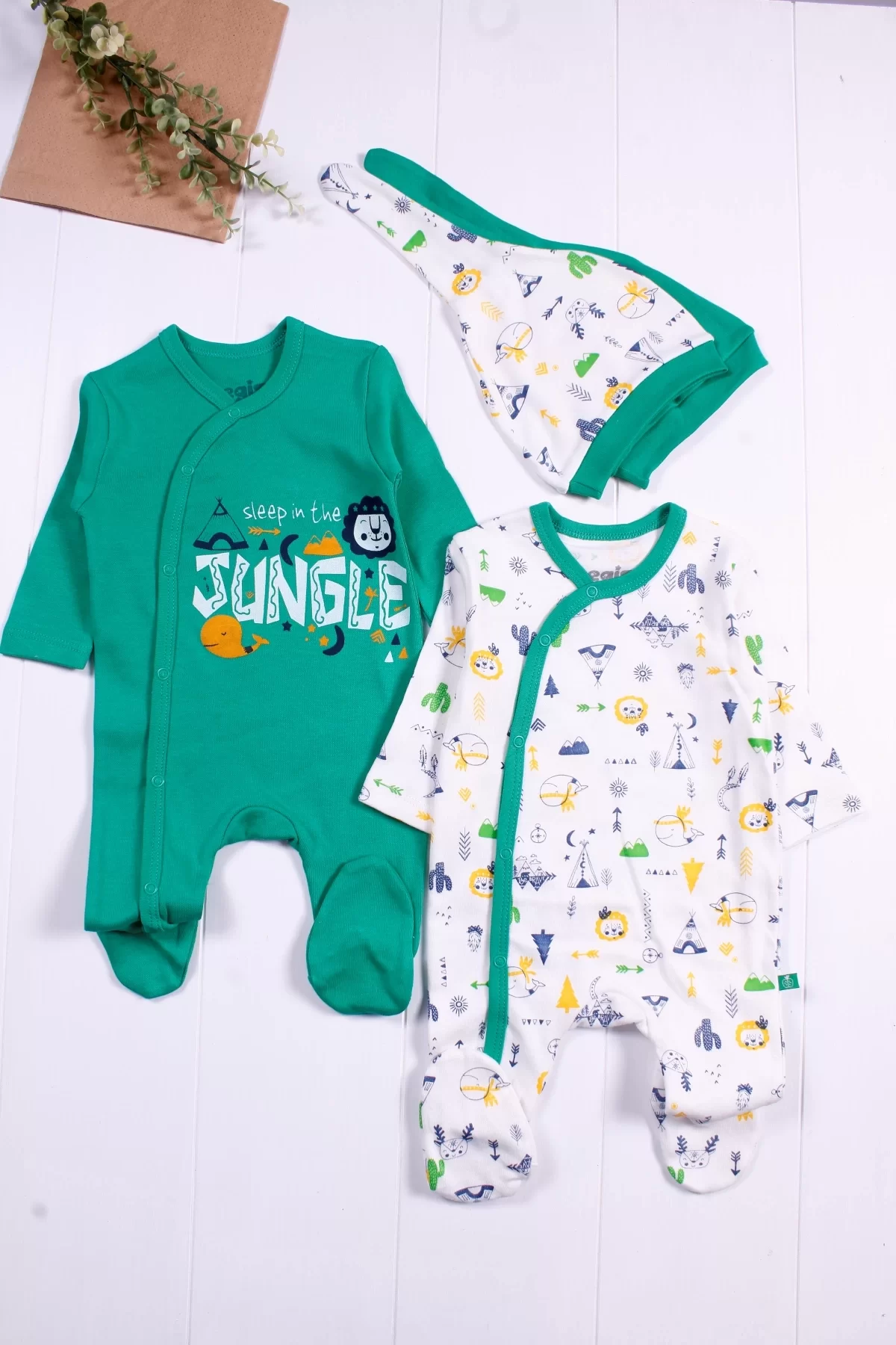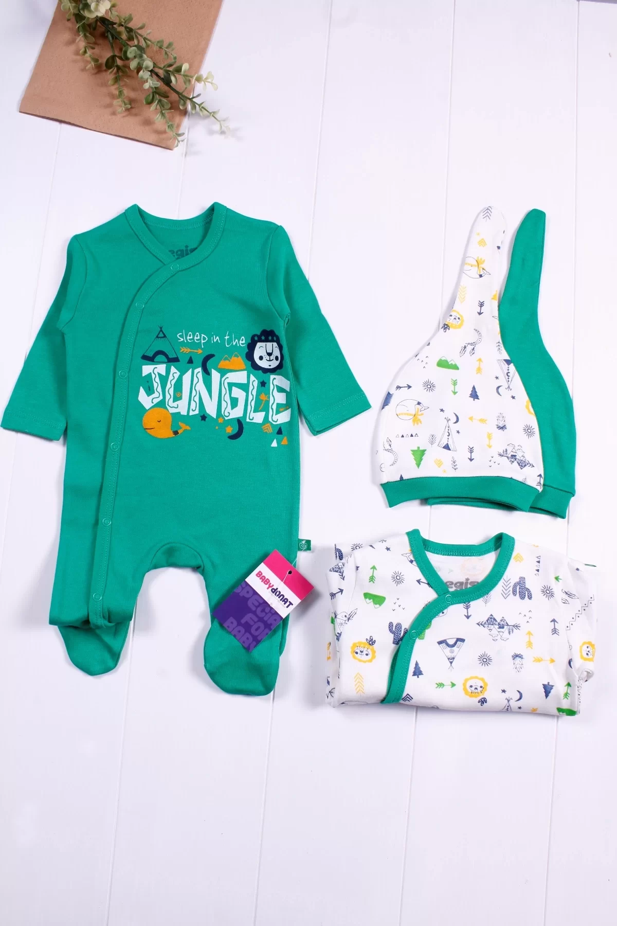 Jungle Desenli Erkek Bebek 4’lü Tulum Seti
