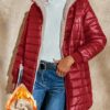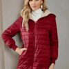 Kadın Uzun Kollu Kapşonlu Cep Detaylı Fermuarlı Orta Boy Mont