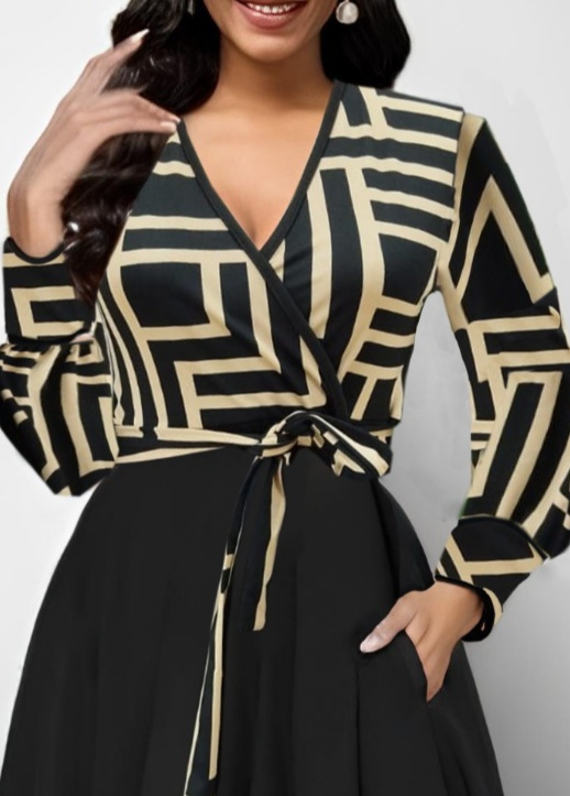 Kadın Uzun Kollu Kruvaze Yaka Dalgıç Krep Midi Boy Elbise