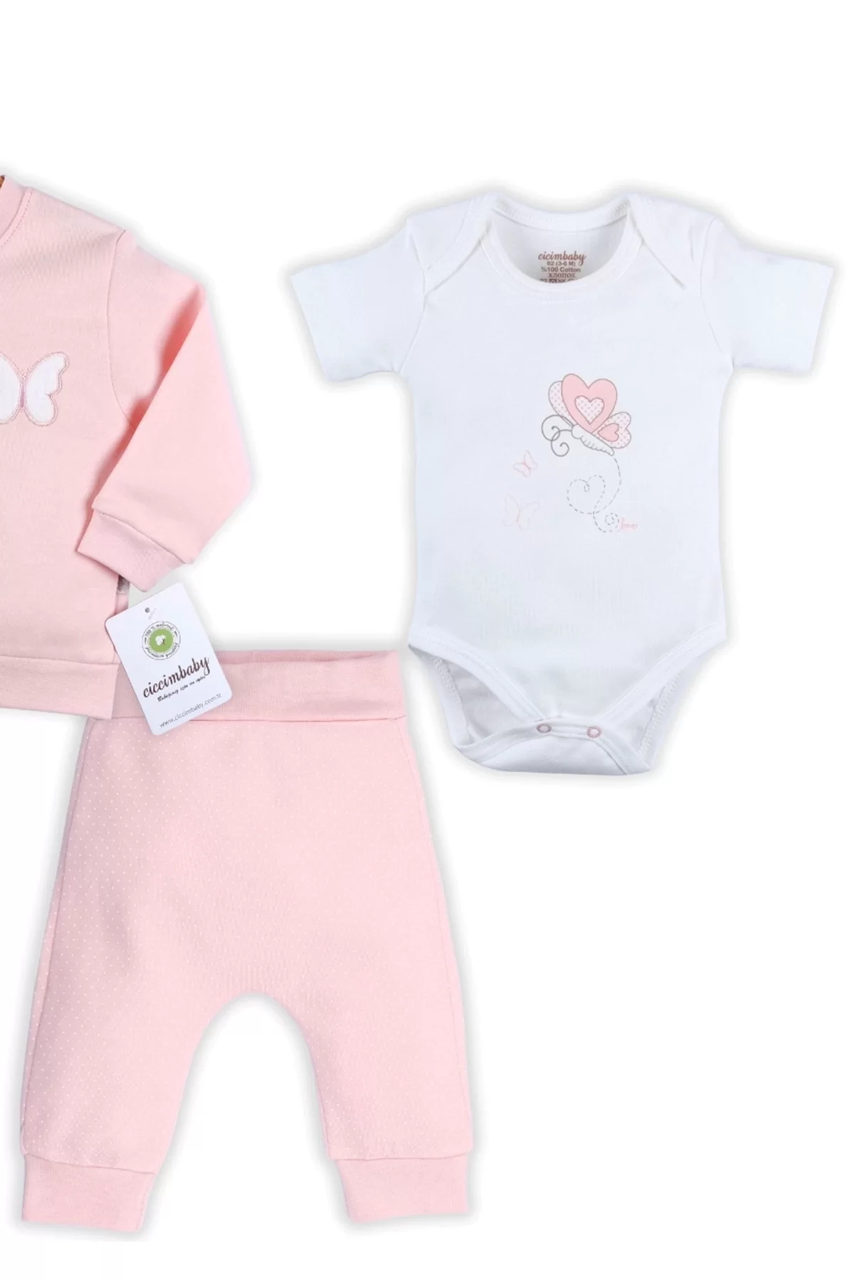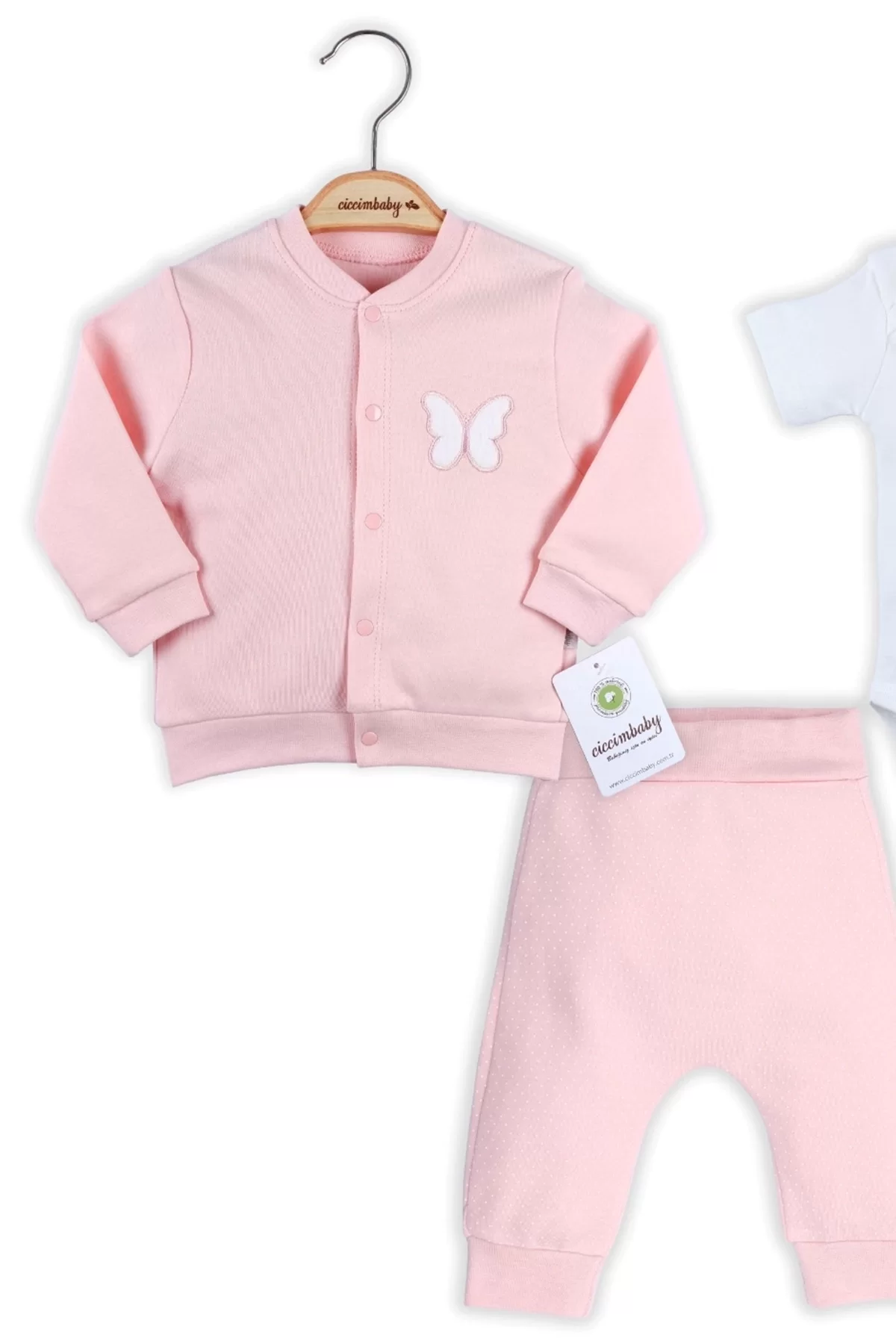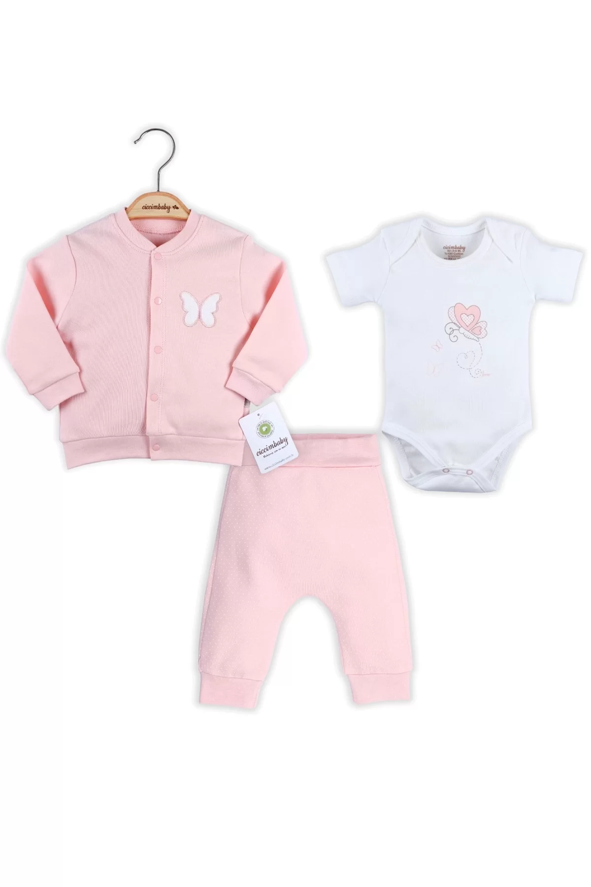 Kalp Desenli Hırkalı % 100 Pamuk 3’lü Kız Takım