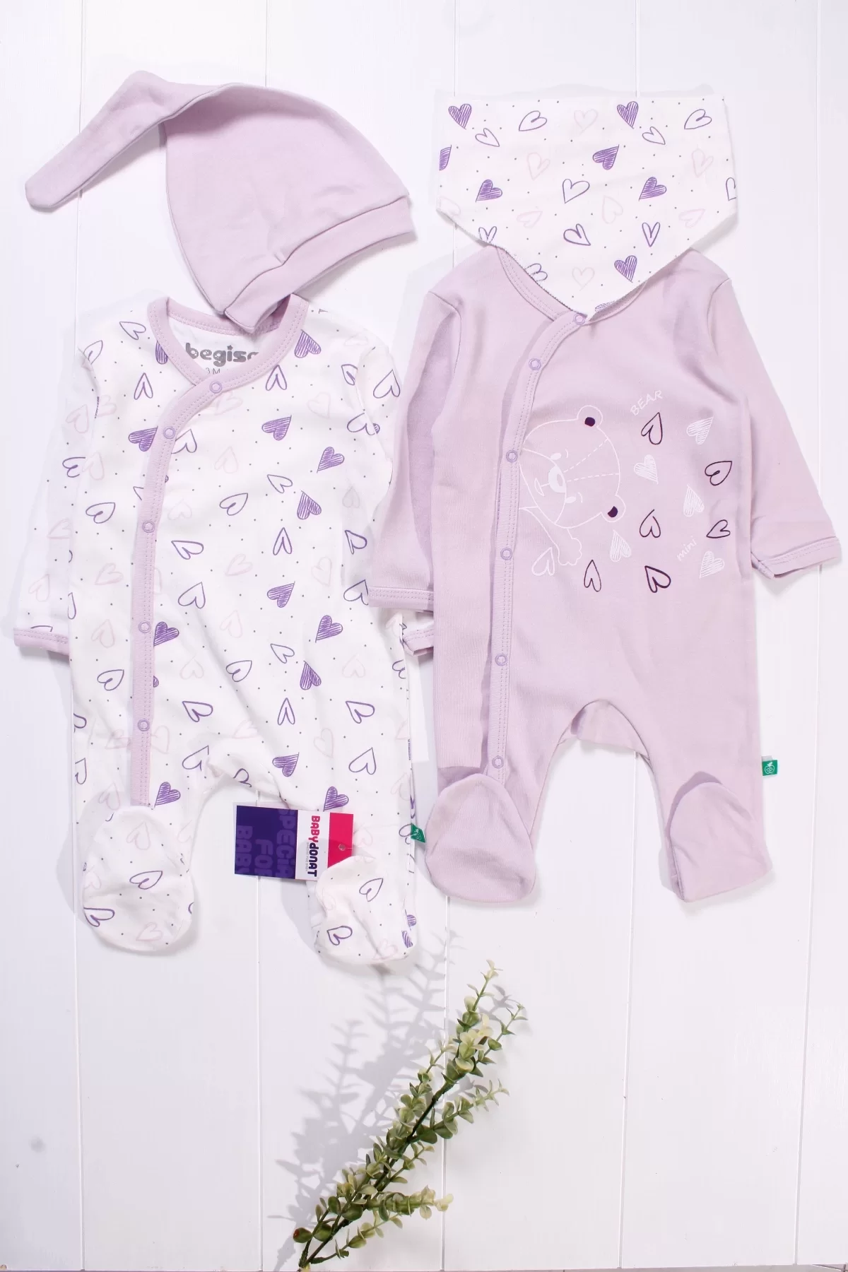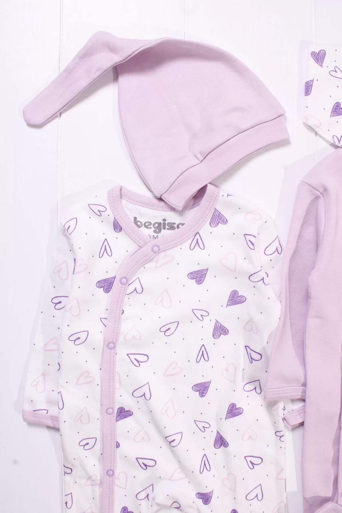 Kalp Desenli Kız Bebek 4’lü Tulum Seti