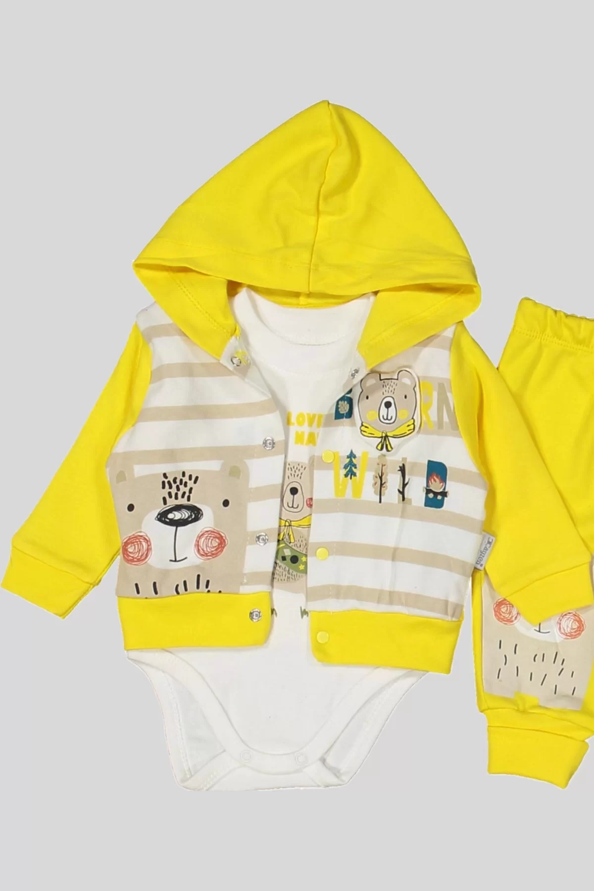 Kamp Desenli Kapüşonlu % 100 Pamuk Erkek Bebek Takımı.