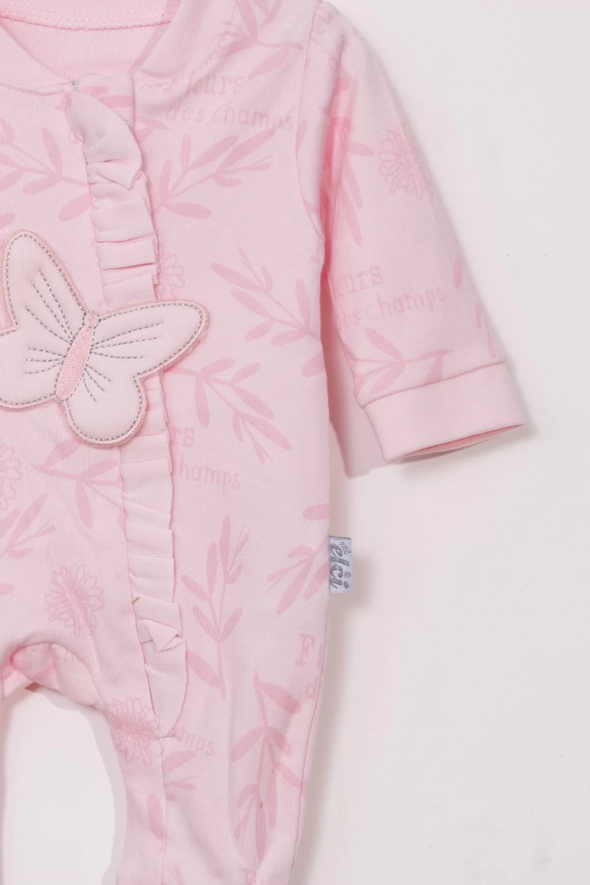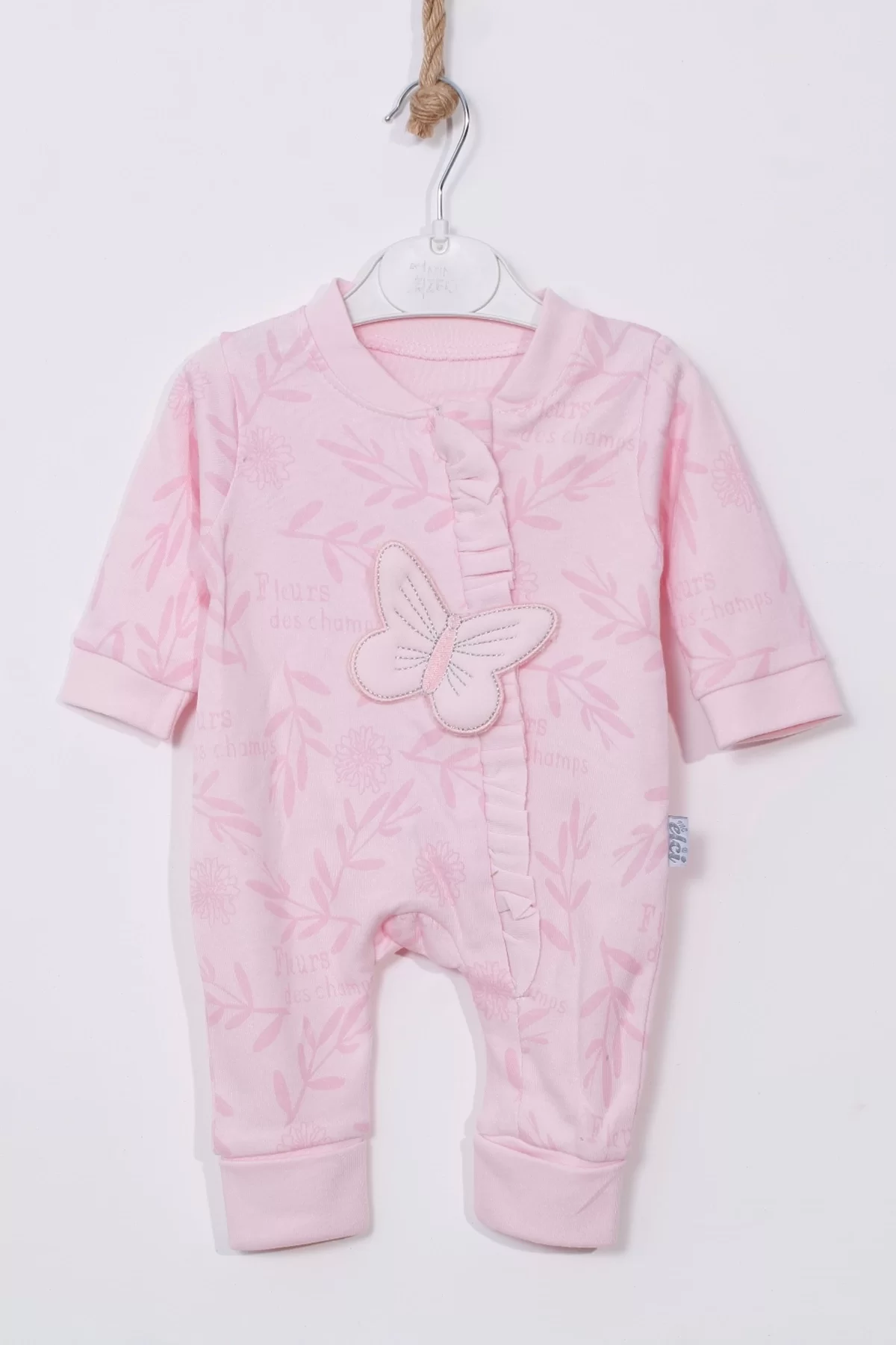 Kelebek Nakışlı % 100 Pamuk Ayaklı Kız Bebek Tulumu