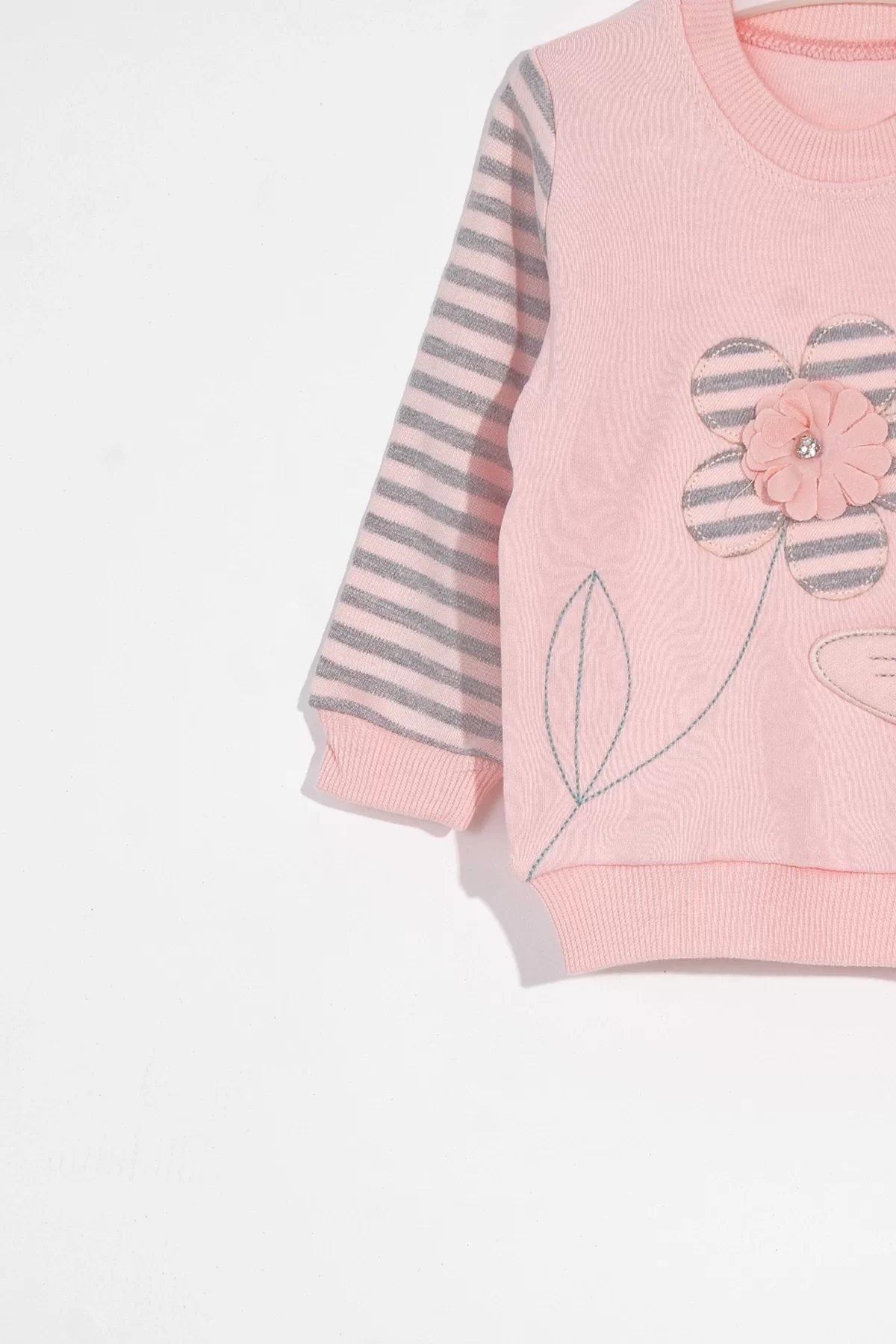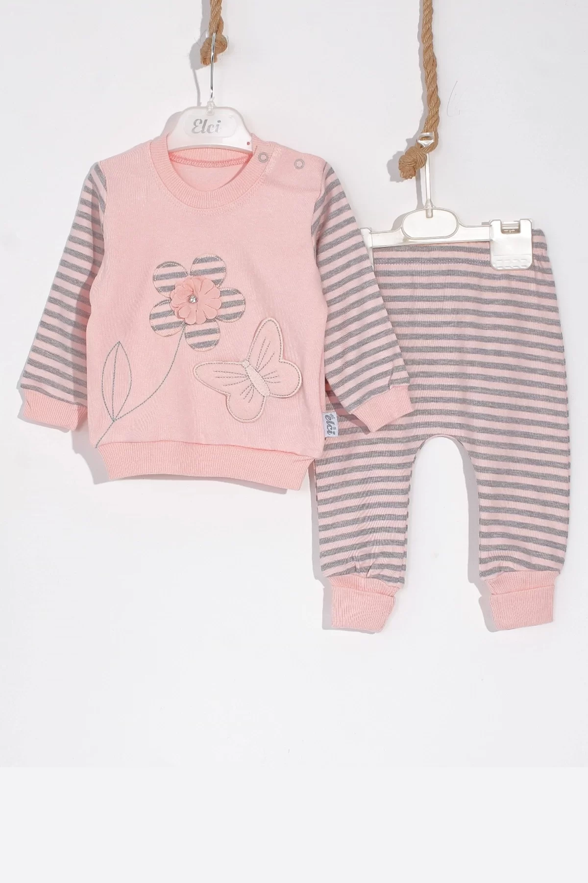 Kelebekli Çiçek Nakışlı Pamuklu 2’li Kız Bebek Takımı