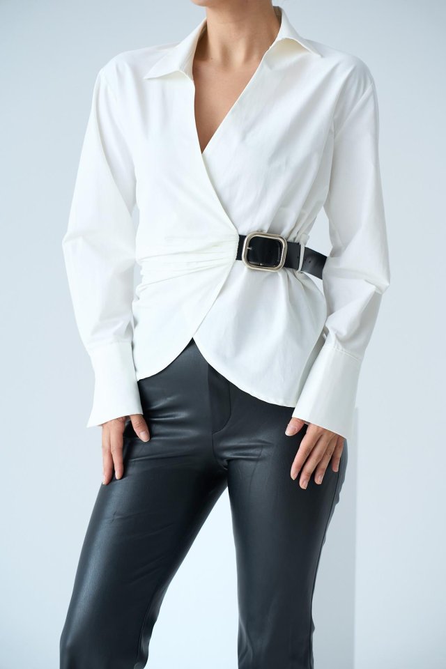 Kemerli Gömlek – Ekru