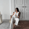 KETEN TEK DÜĞME YELEK-PANTOLON TAKIM – Beyaz