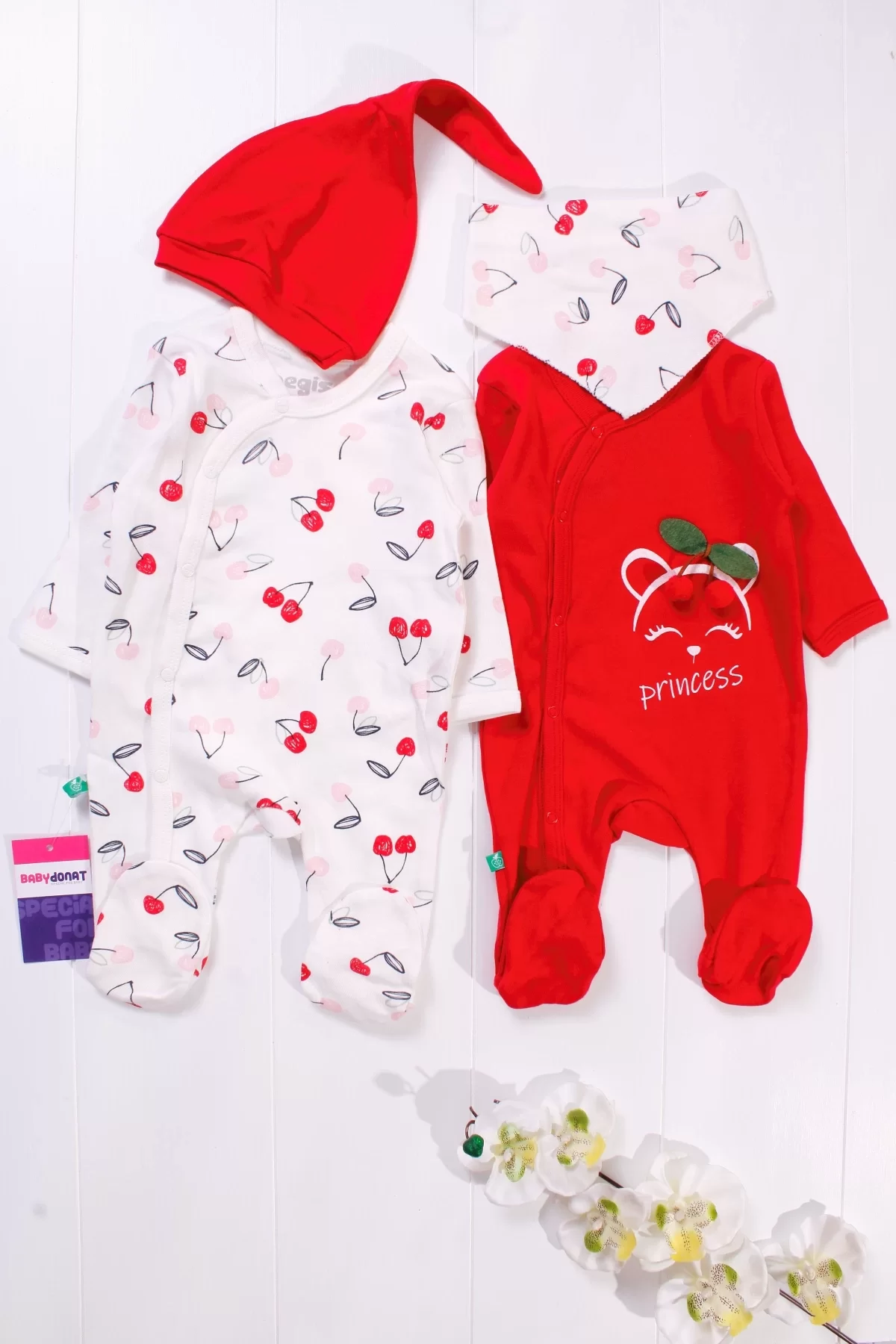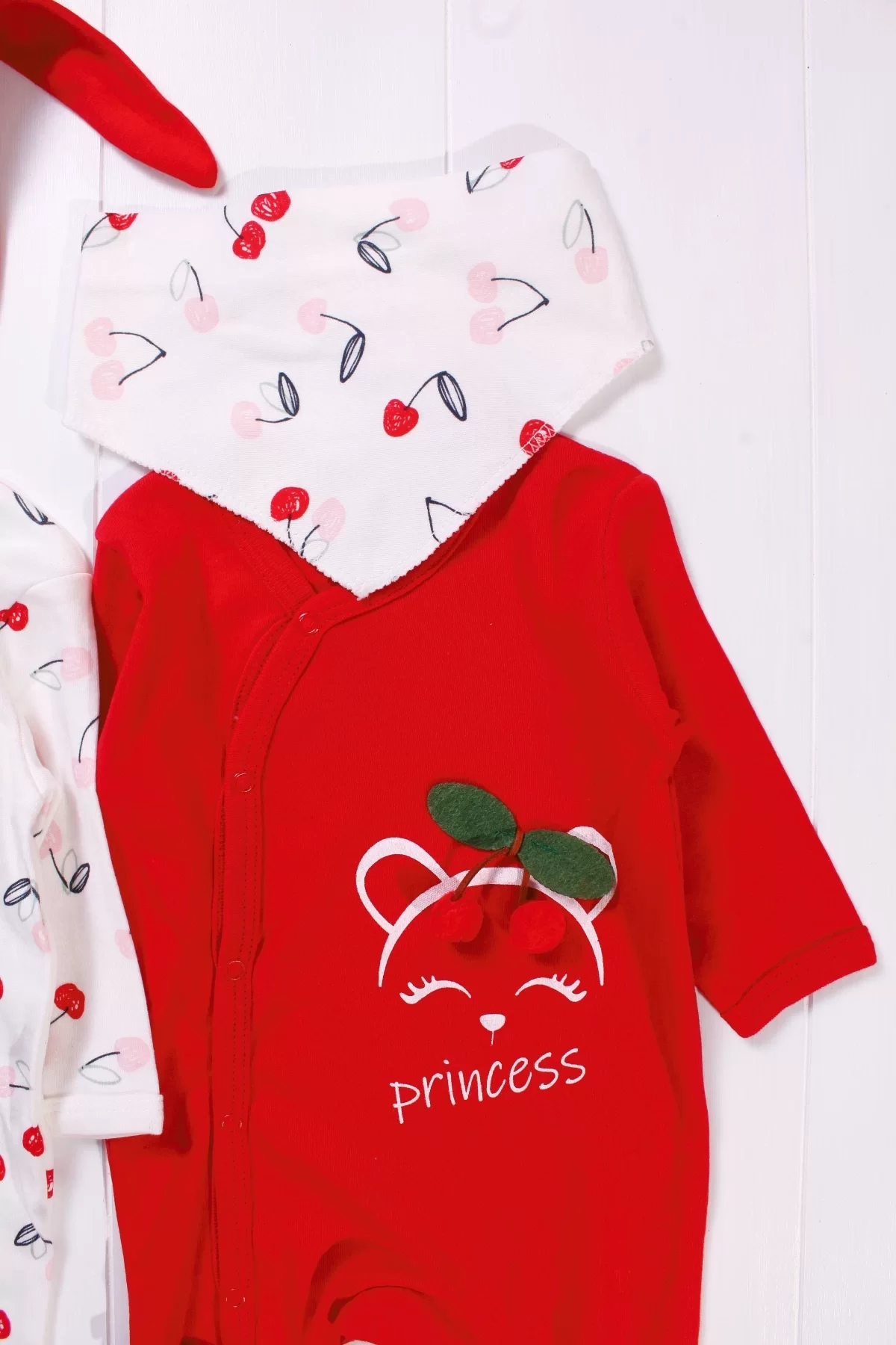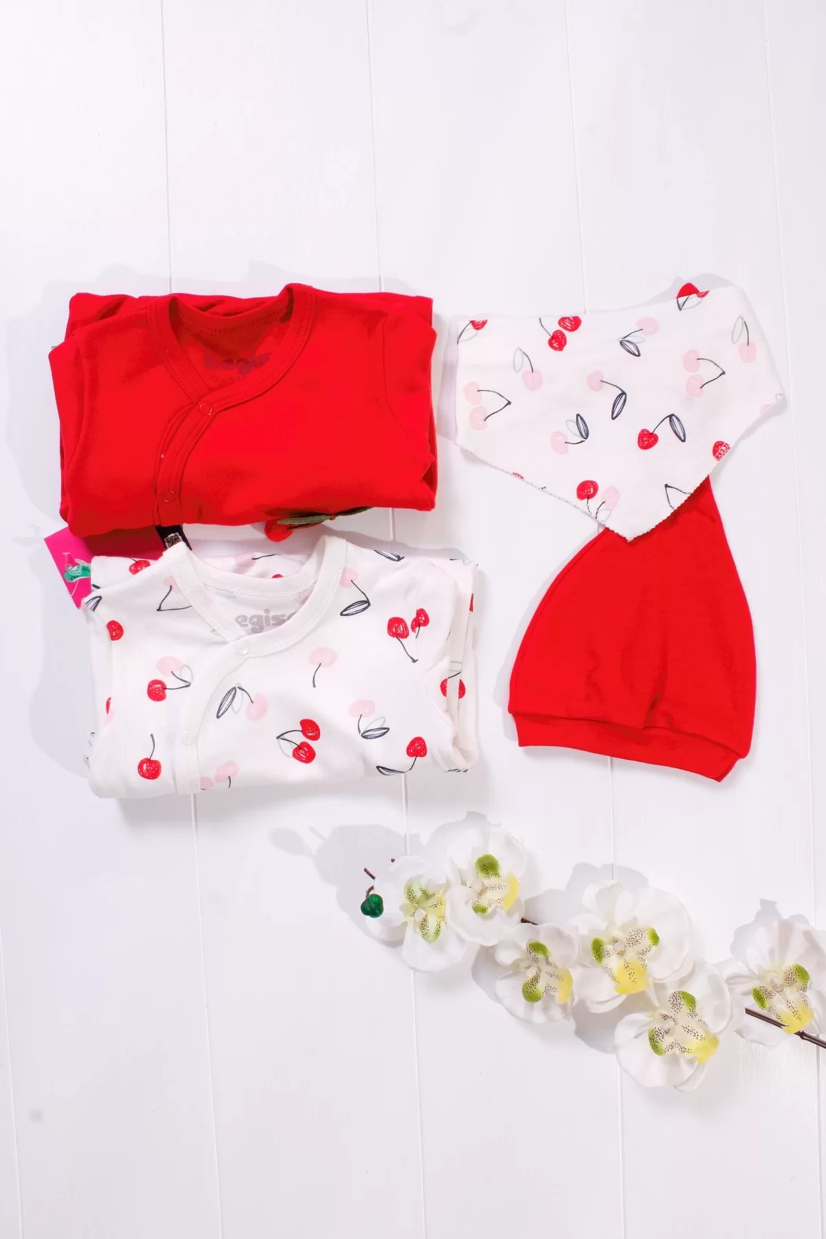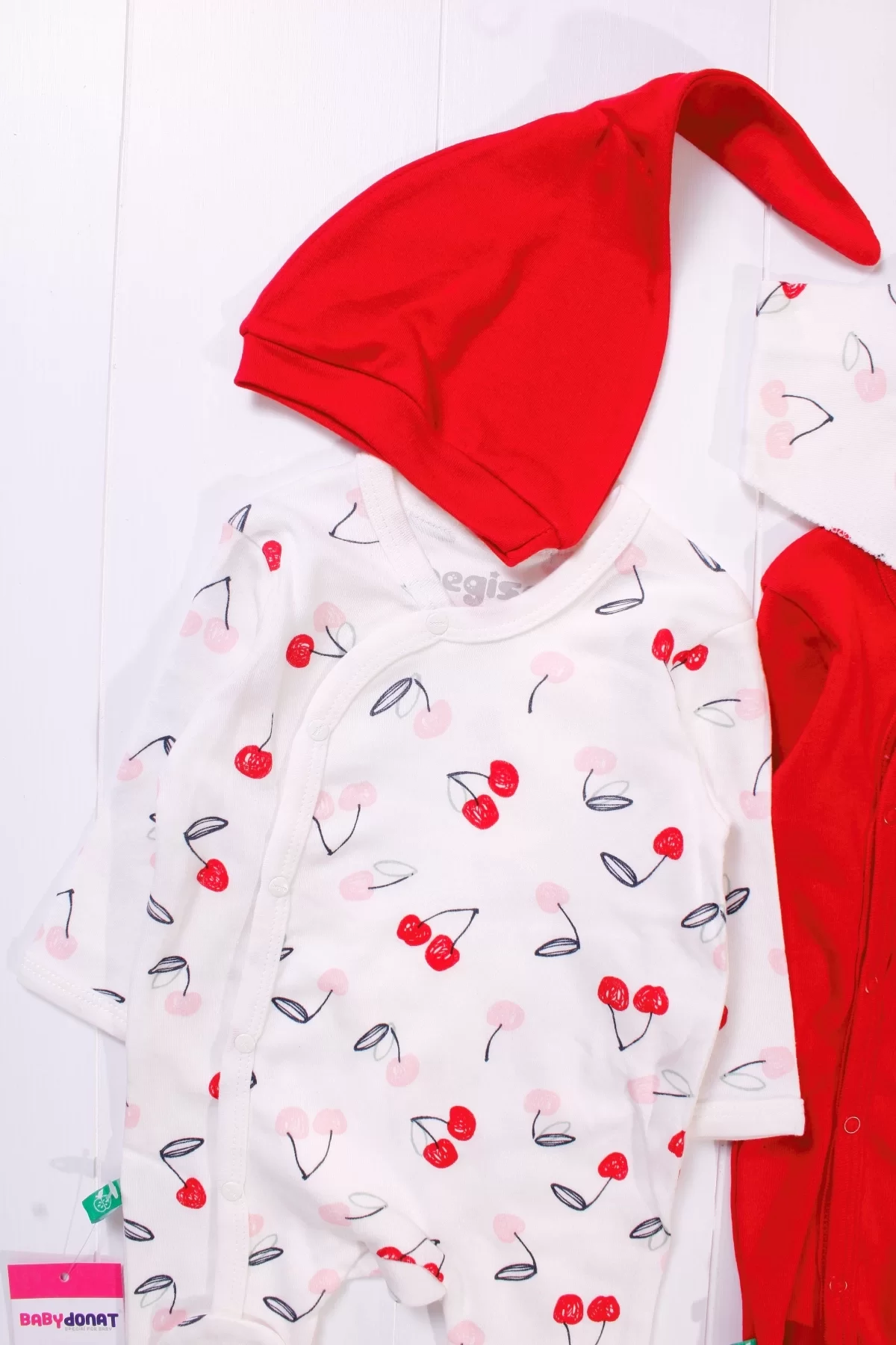Kiraz Aksesuarlı Kız Bebek 4’lü Tulum Seti