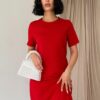 Kırmızı Kısa Kol Atlas Mini Elbise