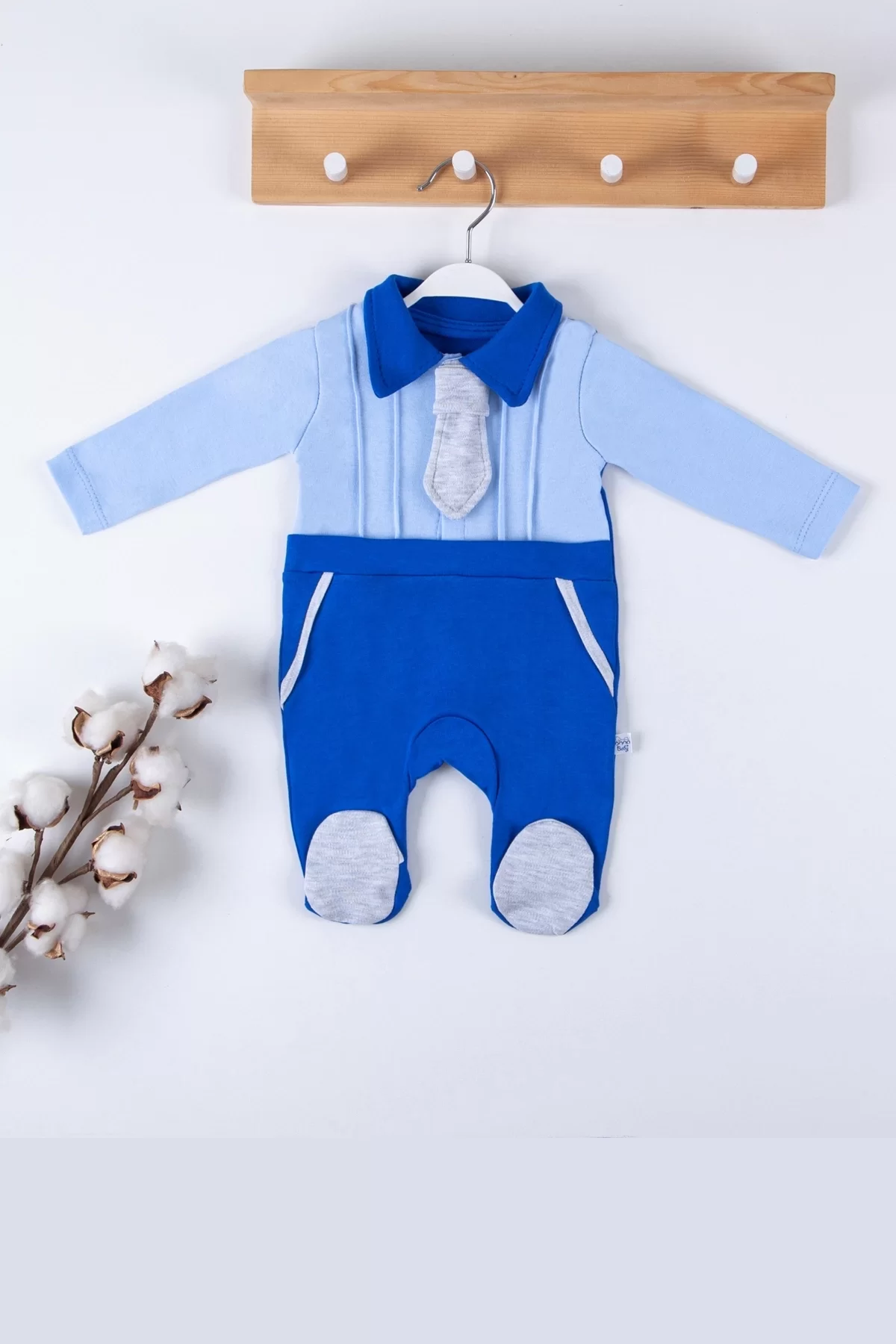 Kravat Aksesuarlı Ayaklı % 100 Pamuklu Erkek Bebek Tulumu.