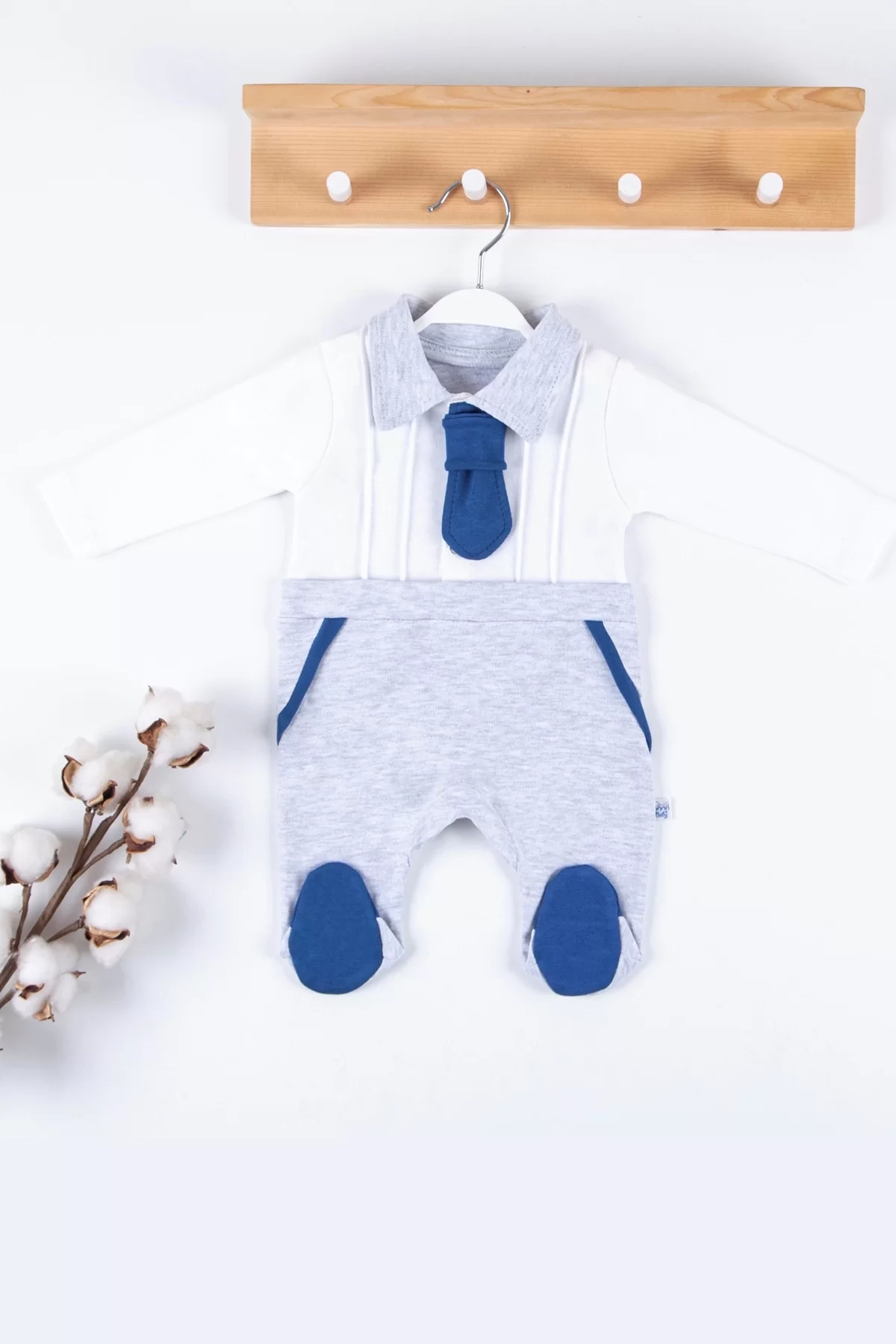 Kravat Aksesuarlı Ayaklı % 100 Pamuklu Erkek Bebek Tulumu.