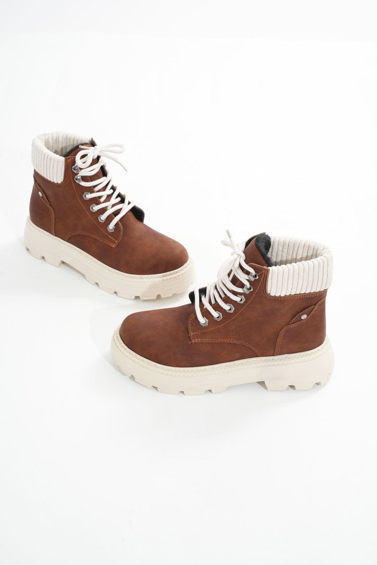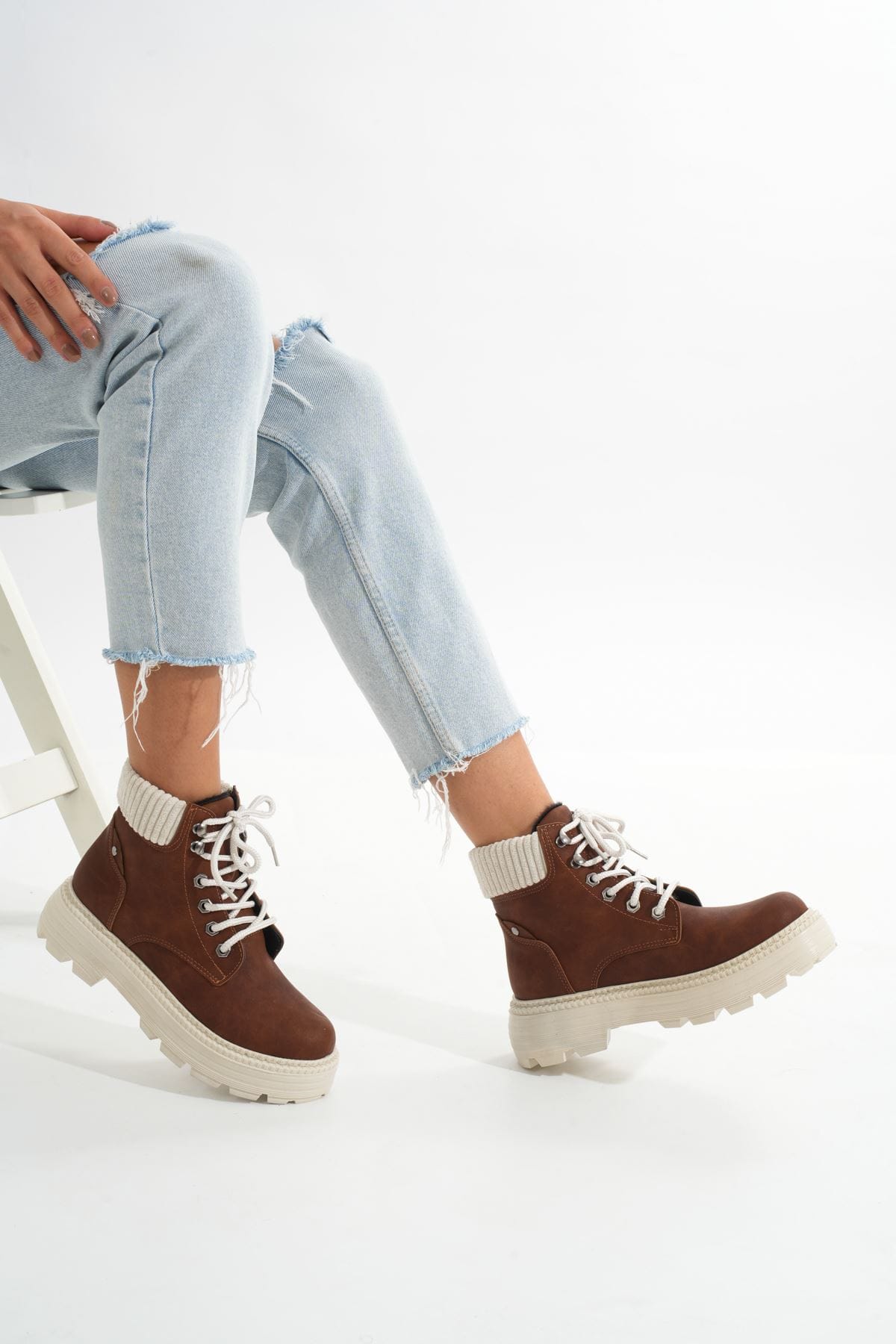 LMÇ-2045 Kahverengi Süet Bağcıklı Kalın Taban Kadın Günlük Bot