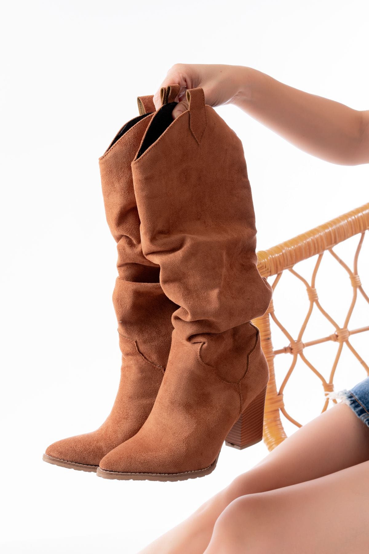 LS-1884 Taba Süet Günlük Kadın Çizme