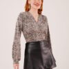 Mini Leopar Desen V Yaka Bluz